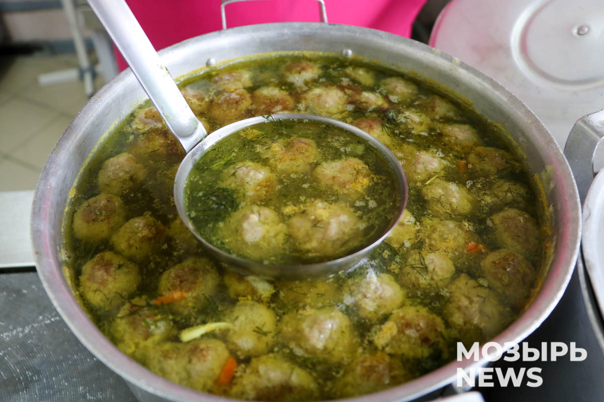 В день репортажа было заявлено 49 обедов. Повар Марта Пархоменко рассказала, что в меню – суп рисовый, каша гречневая, шашлык, куриное филе в сырном кляре, булочка, сок.