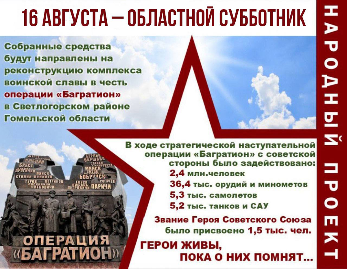 Собранные средства пойдут на реконструкцию комплекса воинской славы в честь операции «Багратион» в Светлогорском районе.