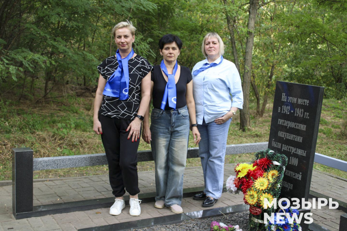 Ко Дню народного единства в рамках Дня добрых дел мозырские активистки ОО «Белорусский союз женщин» провели уборку территории возле памятника жертвам гитлеровского террора 1942–43 годов, расположенного в овраге возле улицы Рыжкова.