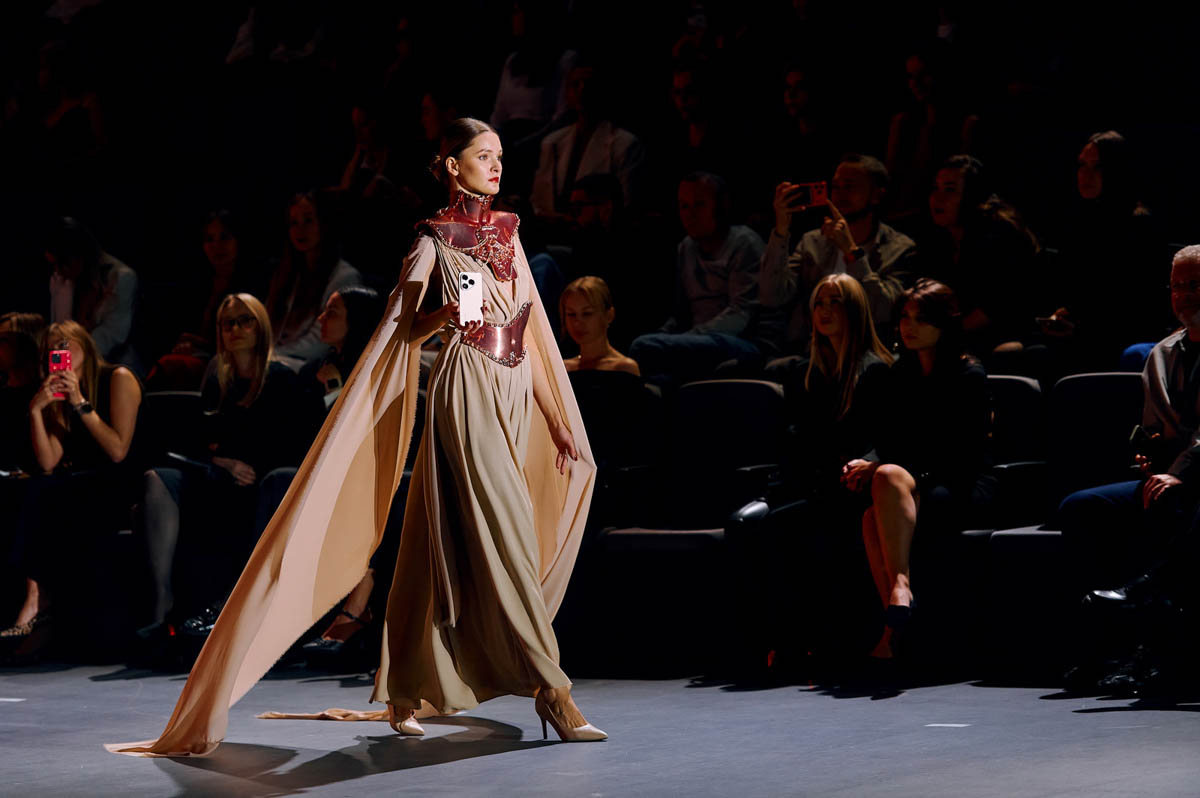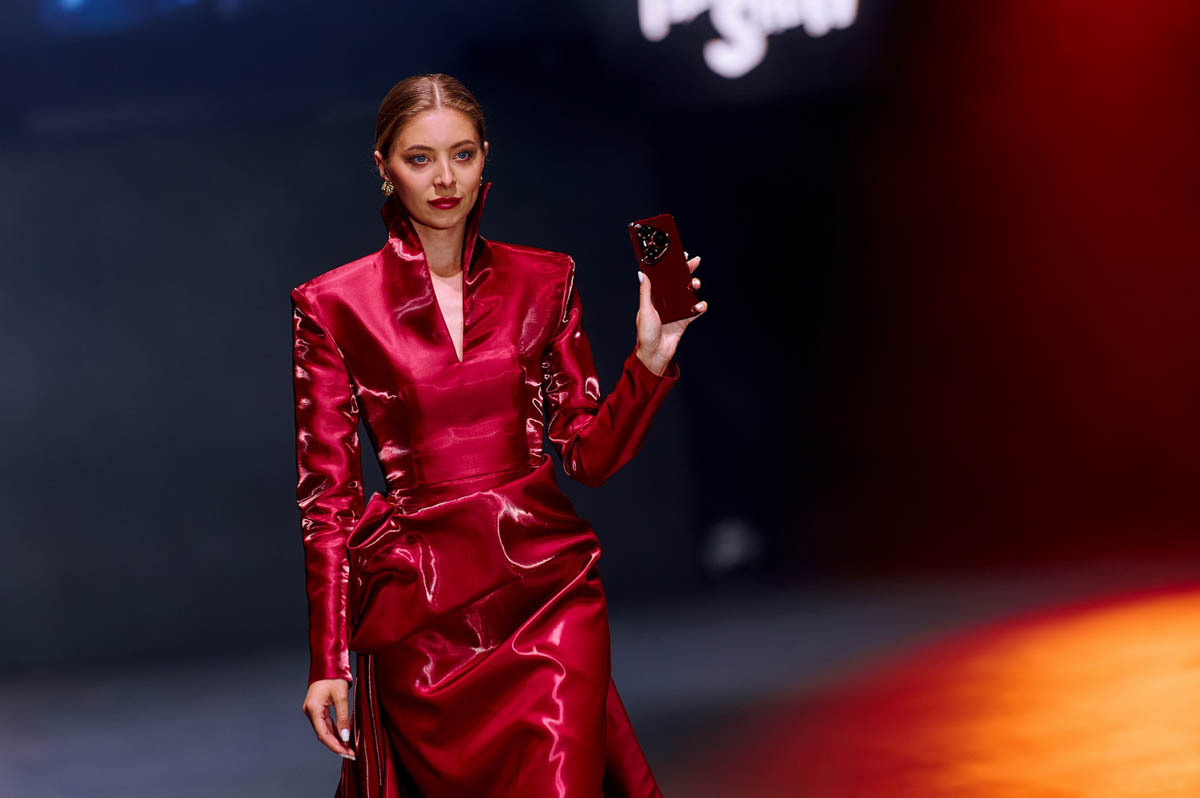 «Интересной творческой задачей для нашего тандема с Ириной Ромбальской стала возможность предложить образы, вдохновленные эстетикой флагманских смартфонов Huawei Pura 80 Ultra, – объяснила задумку Татьяна Ефремова. – Мы узнали, что в дизайне устройства используются декоративные приемы, которые пришли из высокого ювелирного искусства. Например, техника Rigato – особый метод гравировки, при котором на поверхность наносятся тонкие паралелльные насечки, придавая объем и блеск – была использована в его рамке, а 3D-свечение из 200 граней украшает блок камер. Нам было интересно изучить эти детали и провести параллели с нашим творчеством, создав образы, которые отражают внутреннюю силу и характер современной женщины. Мы использовали невесомые шелковые ткани, а также скульптурные хромированные корсеты и аксессуары, которые отсылают к сияющей поверхности. Именно эту многогранность арт-объектов на стыке моды и технологий мы и попробовали воплотить».