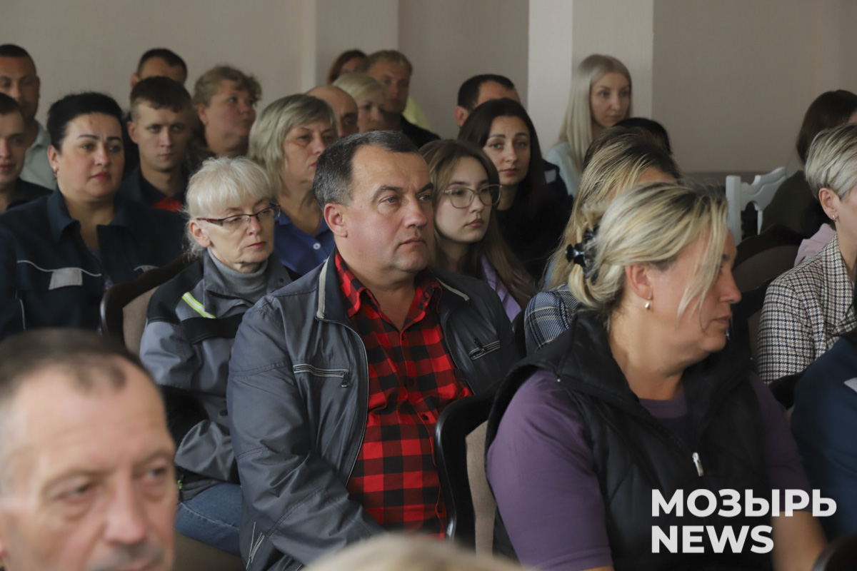 Далее перед коллективом выступил начальник управления землеустройства Мозырского райисполкома Максим Киселев. Максим Андреевич вел разговор о новациях обновленного Кодекса о земле. В частности, он пояснил, как оформить земельный участок и пройти регистрацию в упрощенном порядке. Также Максим Андреевич остановился на проблеме самовольно занятых участков, дач и самовольных построек. В заключение своего выступления он ответил на вопросы.