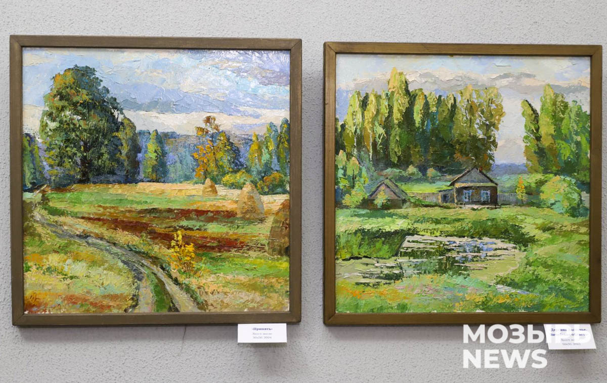 В экспозиции были представлены пейзажи, отражающие уникальность красоты родных мест художника. Всматриваясь в них, невольно погружаешься туда, где протекает Припять, цветет вишня, утопает в желтой листве сельская церквушка. Картины написаны с той самой любовью, о которой говорил автор.