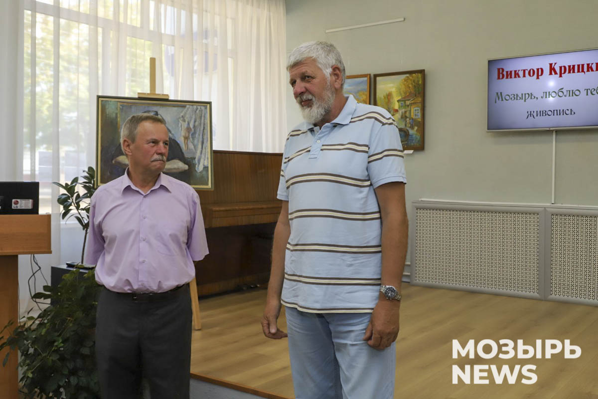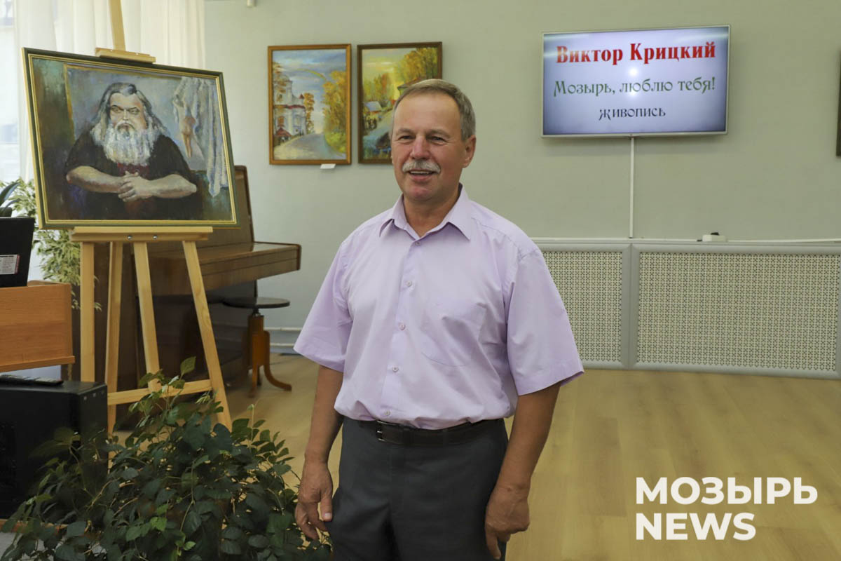 Сегодня в зале краеведения центральной районной библиотеки имени А. С. Пушкина состоялось открытие персональной выставки мозырского художника Виктора Крицкого под названием «Мозырь, люблю тебя!».
