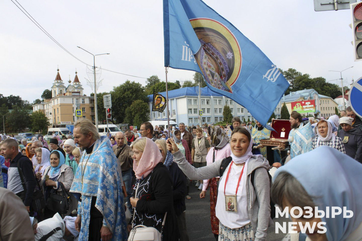 Сотни верующих разных возрастов ранним утром собрались у храма. Крестный ход начался с божественной литургии в мозырском Свято-Михайловском кафедральном соборе. После паломники, а их каждый год сбирается очень много, направились в юровичский Свято-Рождество-Богородичный мужской монастырь, где будет совершен молебен перед чудотворным образом Божией Матери.