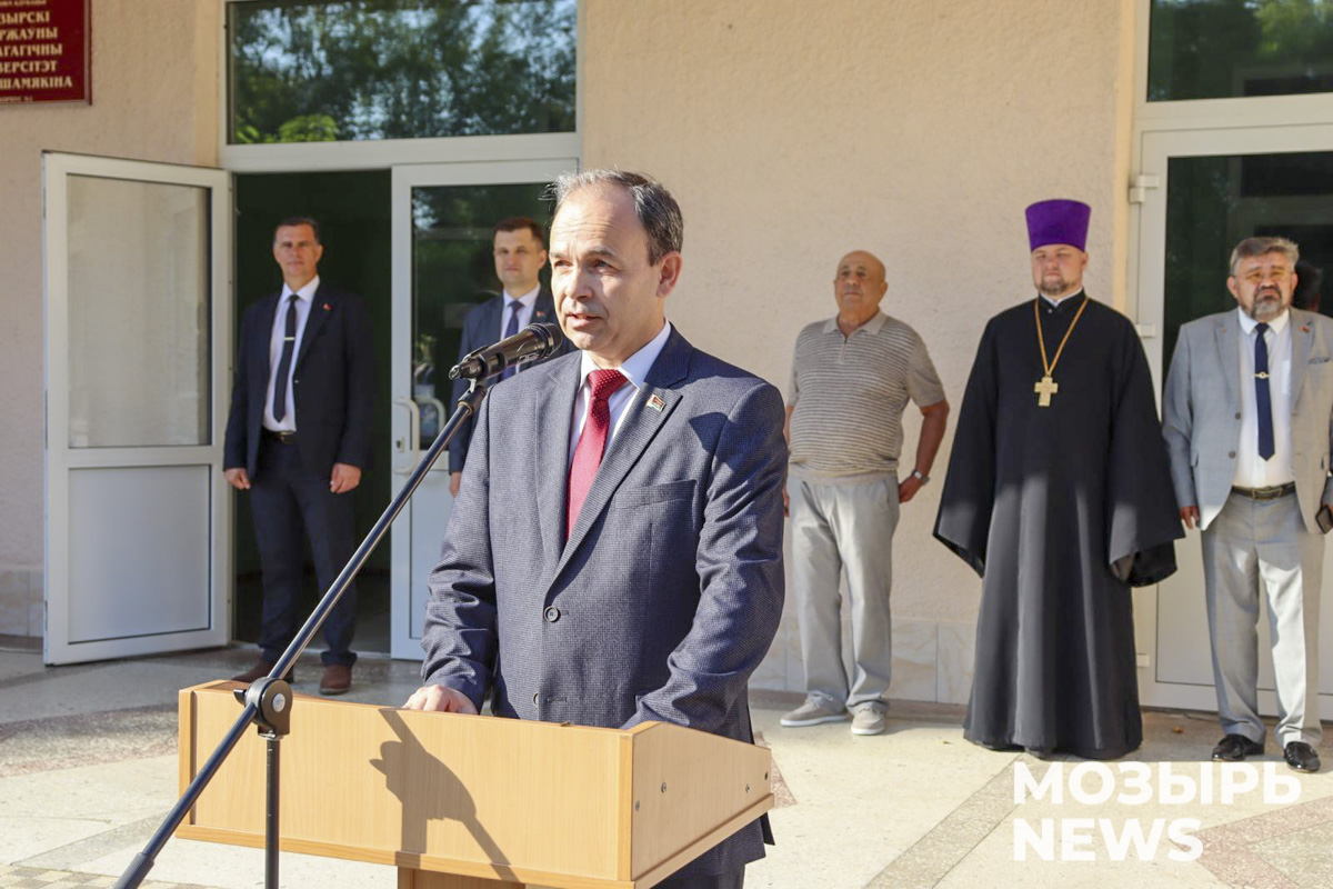 Приветствуя студентов, заместитель председателя Мозырского районного исполнительного комитета Дмитрий Миллер пожелал учиться с желанием, преодолевать трудности и идти к новым вершинам.