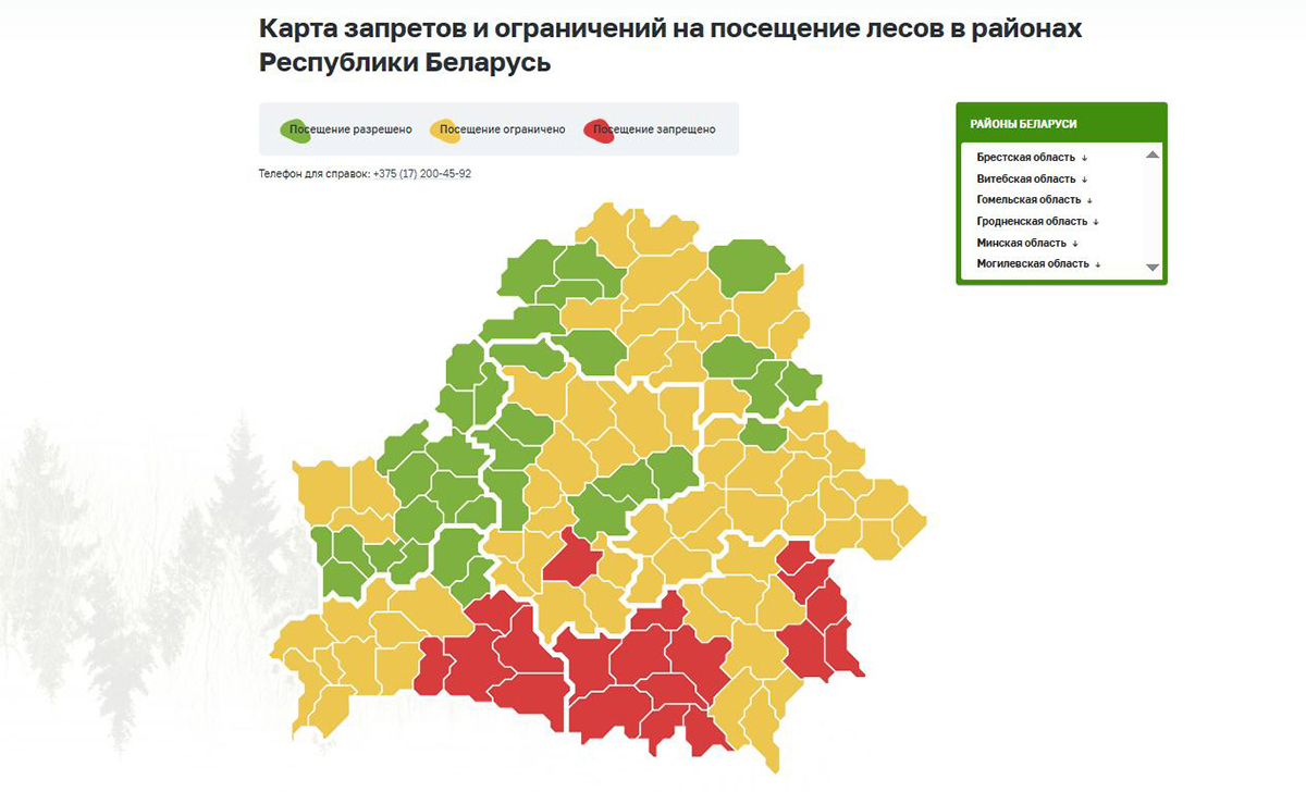 В их число вошли: Мозырский, Петриковский, Калинковичский, Наровлянский, Лельчицкий, Ельский, Ветковский, Добрушевский, Гомельский, Житковичский, Кормянский, Октябрьский и Чечерский районы. Это означает полный запрет на посещение их лесного фонда и въезд туда на транспорте.