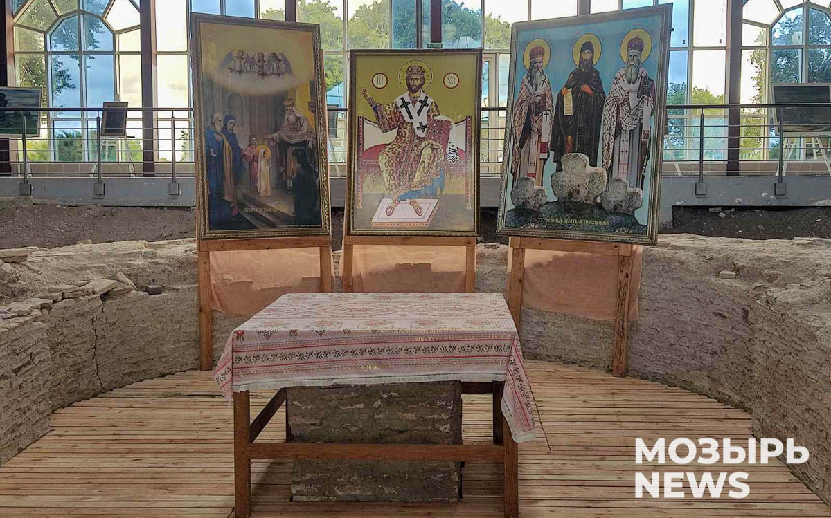 Также в экспозиции на Замковой горе можно увидеть и другие археологические находки. Наш интерес вызвали иконки XII века и портрет древней жительницы Турова, воссозданный по образу мумии из саркофага.