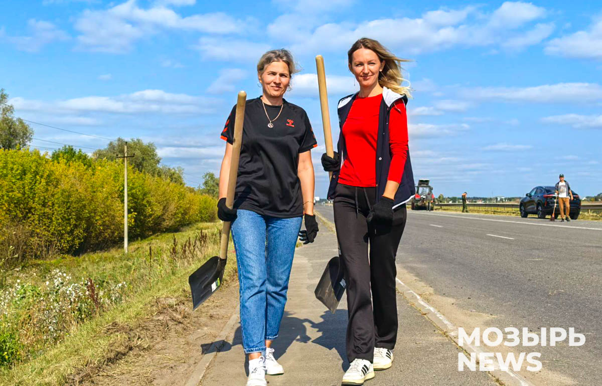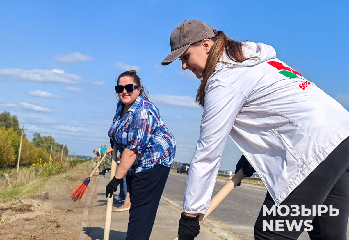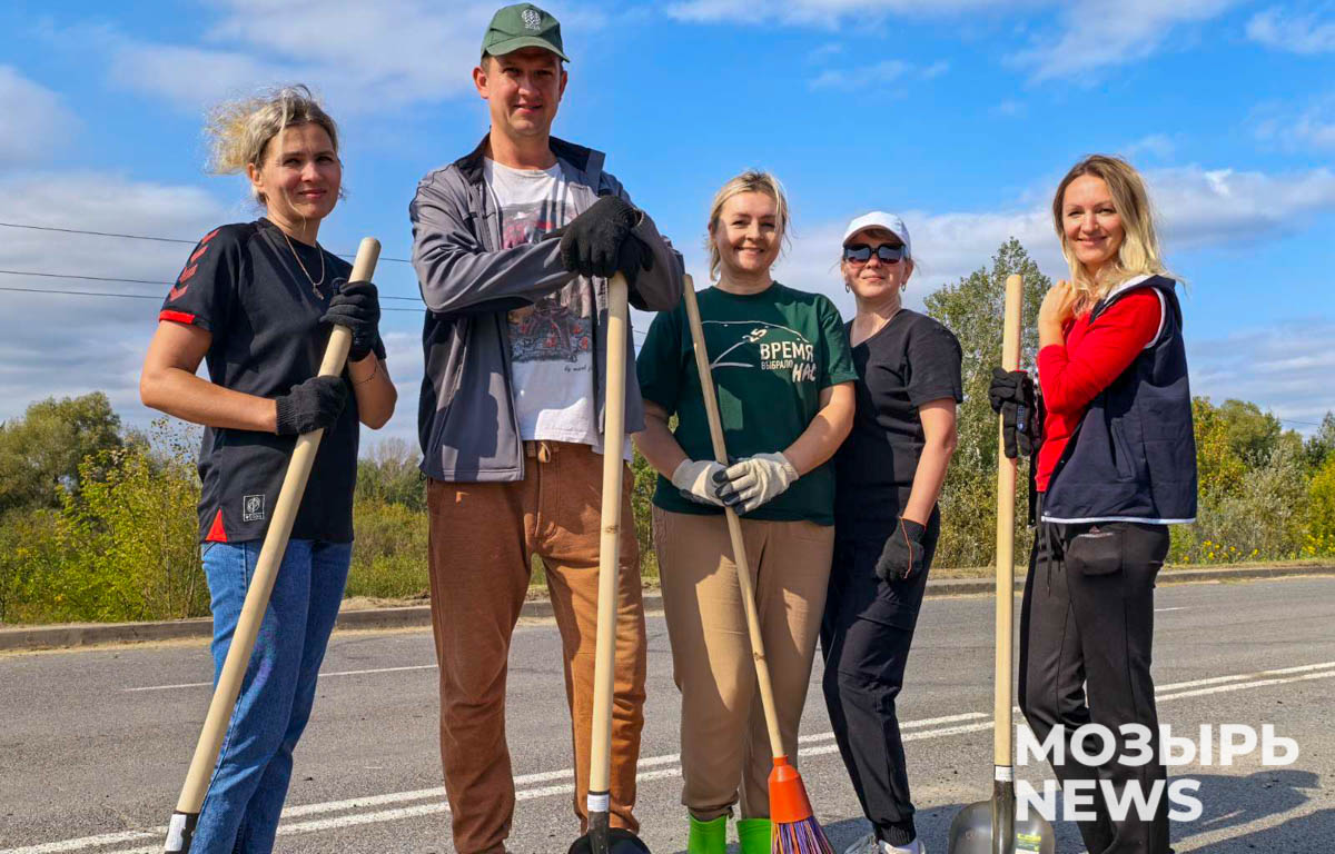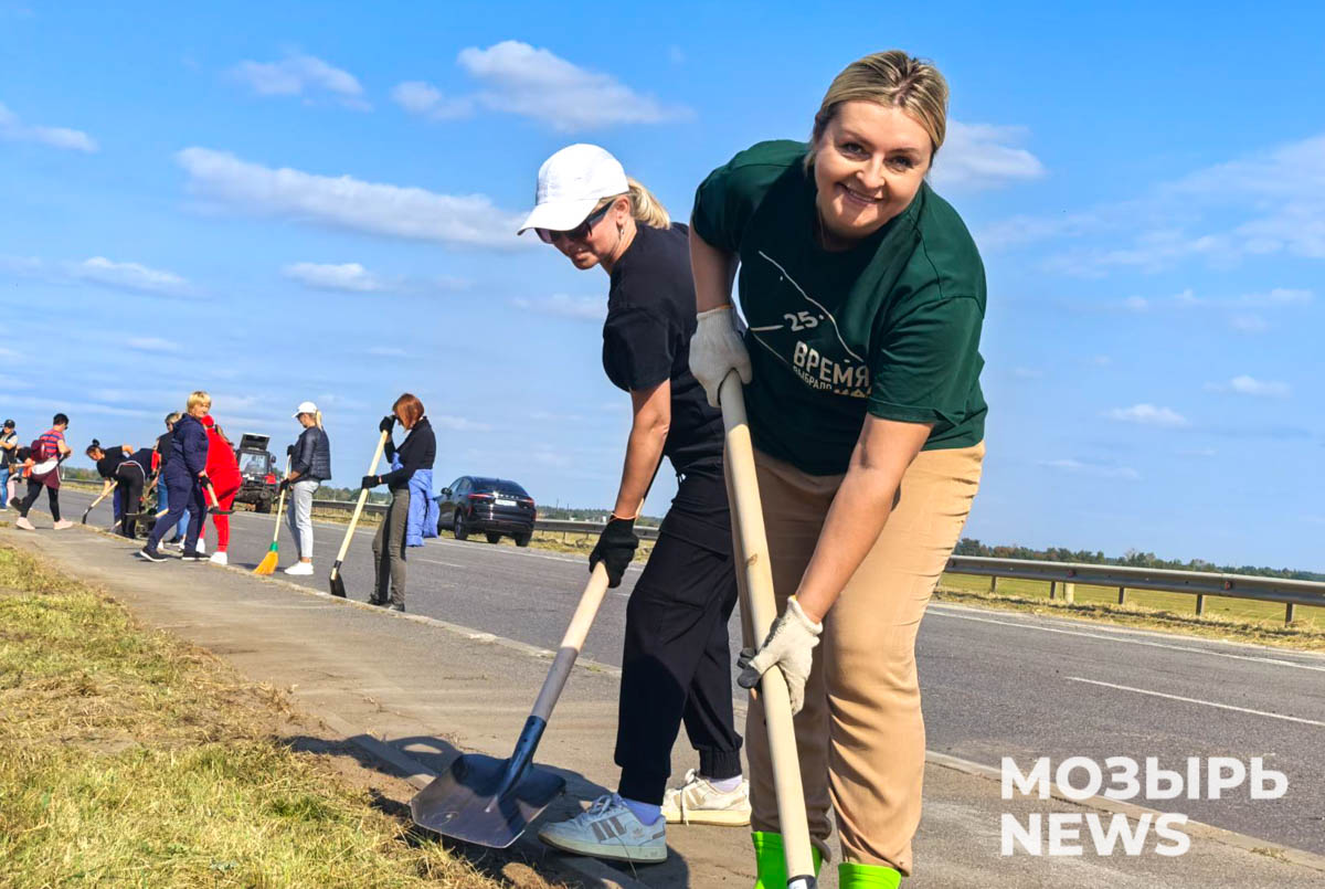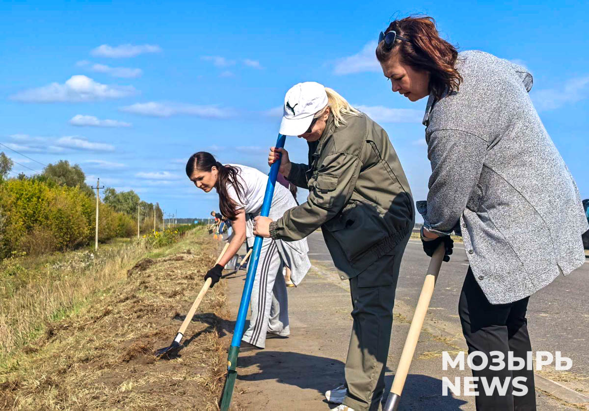 Сегодня мозыряне ударно поработали у дороги к самому главному строительному объекту города – мосту через Припять.