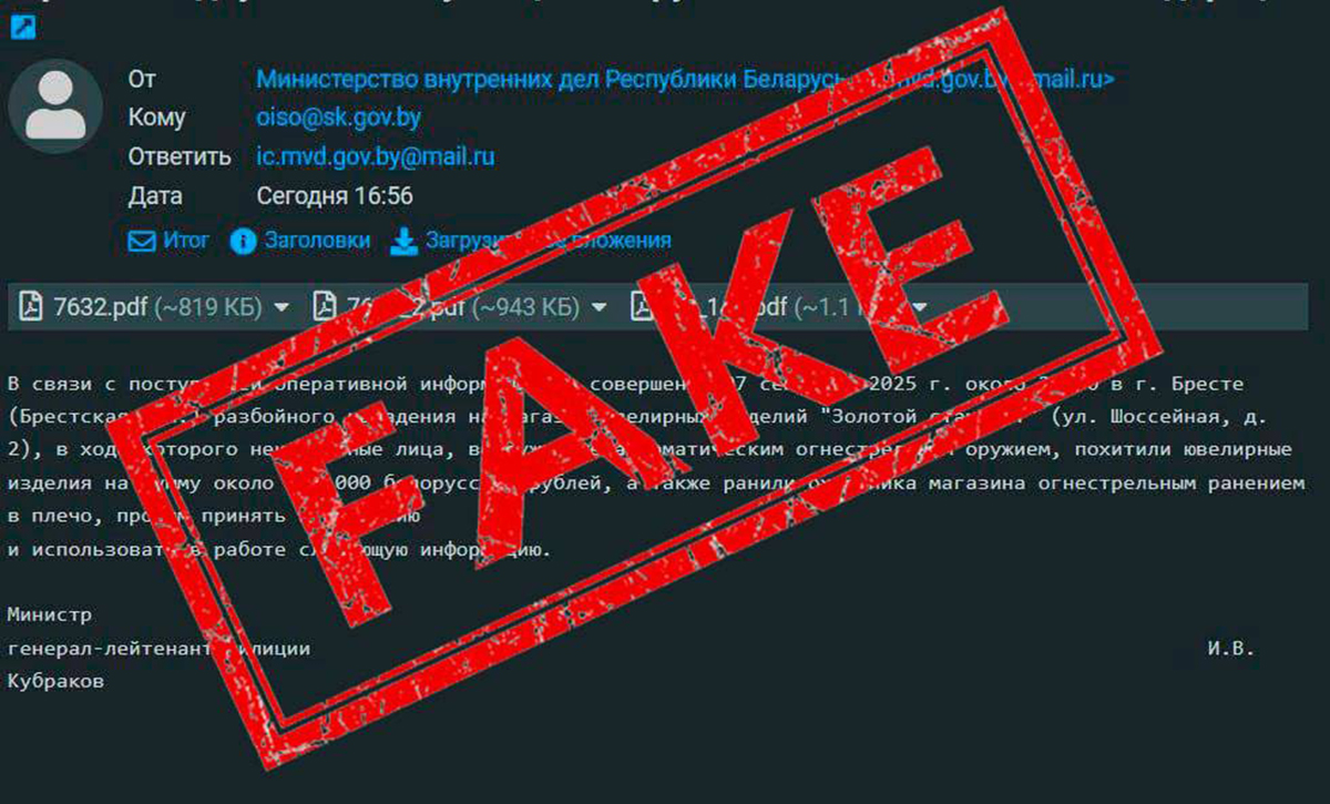 Сегодня различным учреждения республики поступили электронные письма от имени Министра внутренних дел.