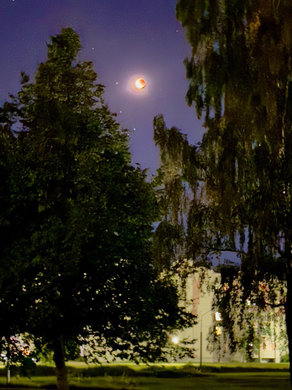 По расчетам астрономов, полная фаза затмения длилась почти 83 минуты. В этот момент Луна окрасилась в красные оттенки — эффект, вызванный прохождением солнечного света через атмосферу Земли.