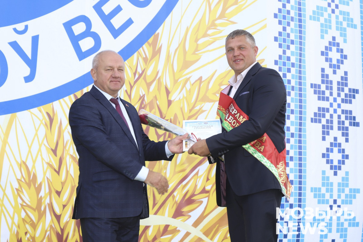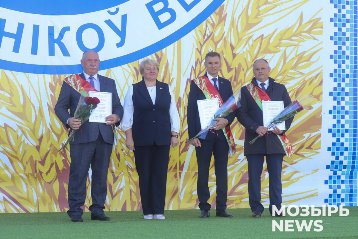Разделить с аграриями радость победы и торжественность момента приехали председатель Мозырского райисполкома Елена Павлечко, депутаты Палаты представителей Национального собрания Республики Беларусь Оксана Ковалькова и Алла Науменко, председатель Мозырского районного Совета депутатов Галина Кудина, а также заместитель председателя – начальник управления сельского хозяйства и продовольствия Василий Климович.