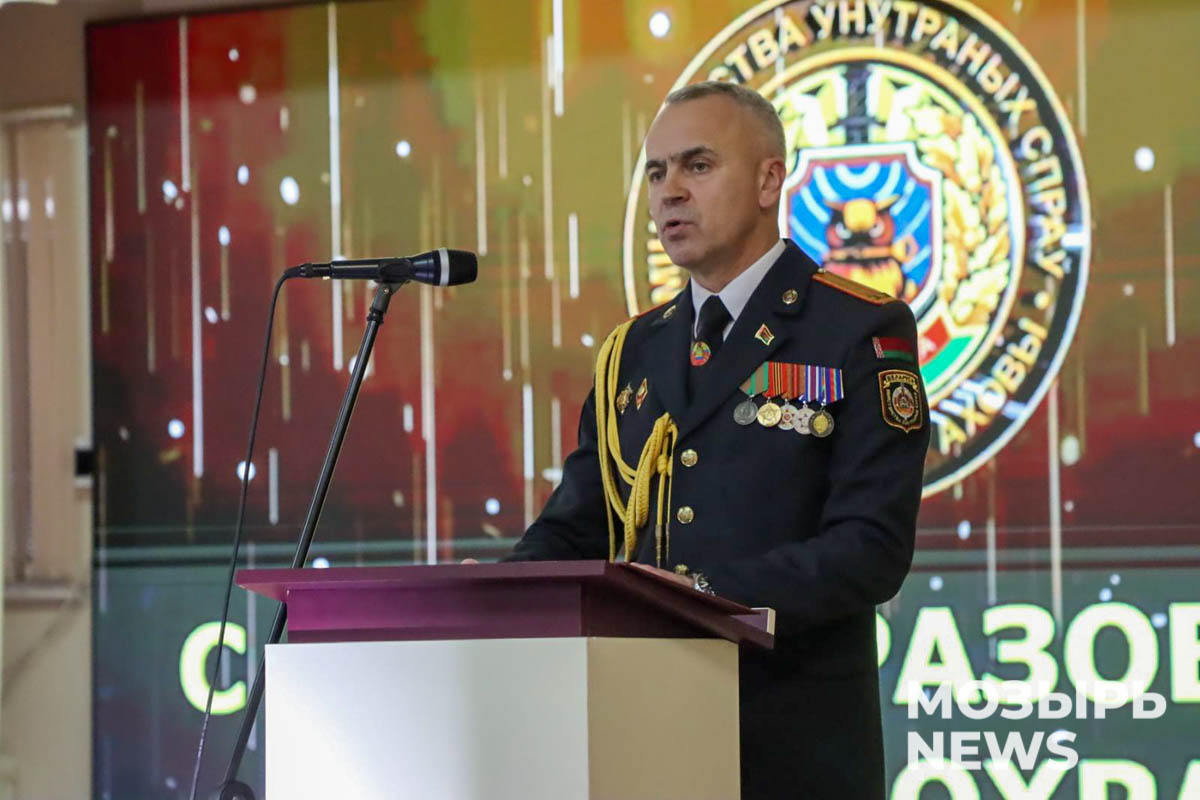 Приветствуя собравшихся гостей и личный состав, начальник Мозырского отдела Департамента охраны МВД подполковник милиции Виктор Буценко сказал, что Департамент охраны МВД – это структура с богатой историей. Согласованная работа позволяет эффективно бороться с преступностью и поддерживать правопорядок, обеспечивать защиту граждан, предприятий и государства.