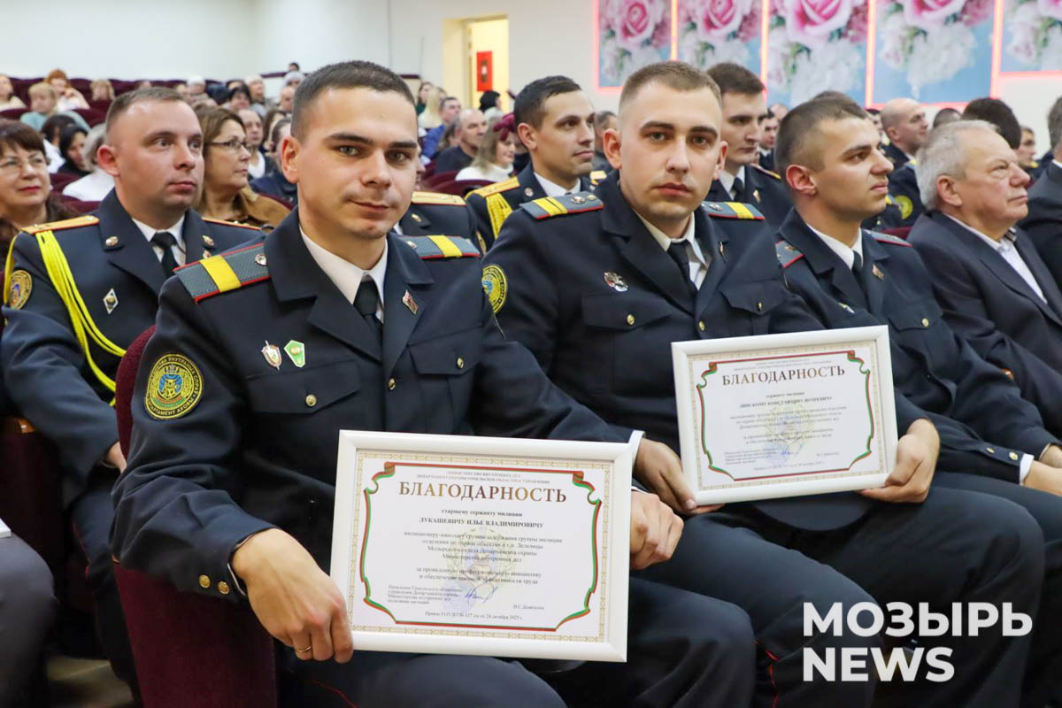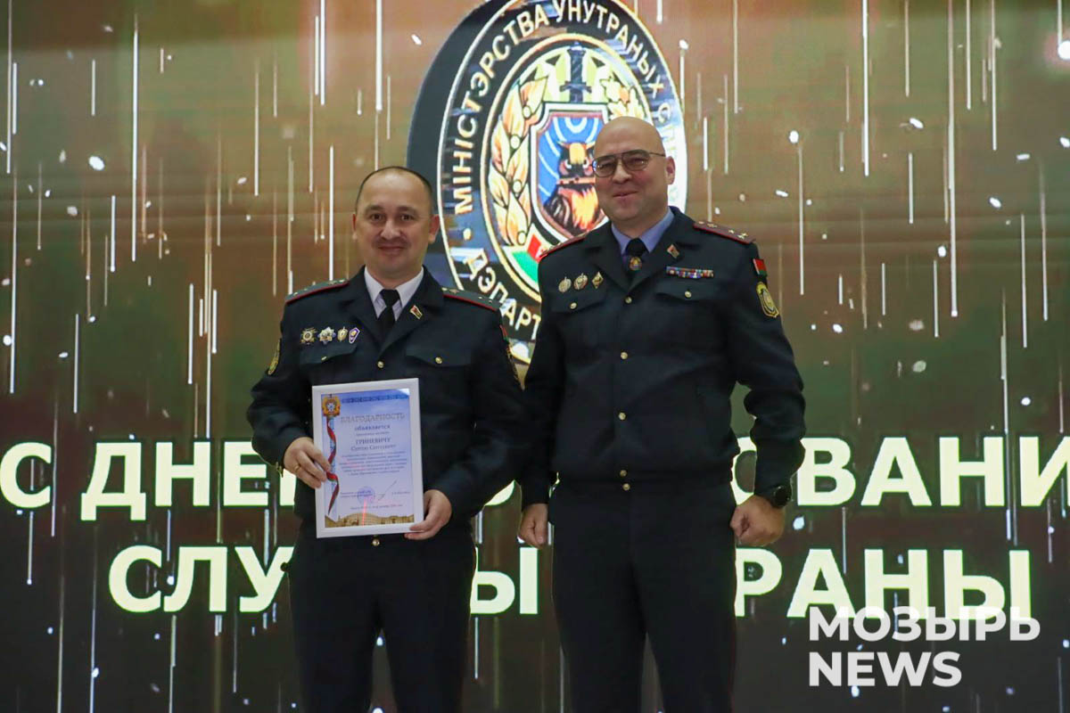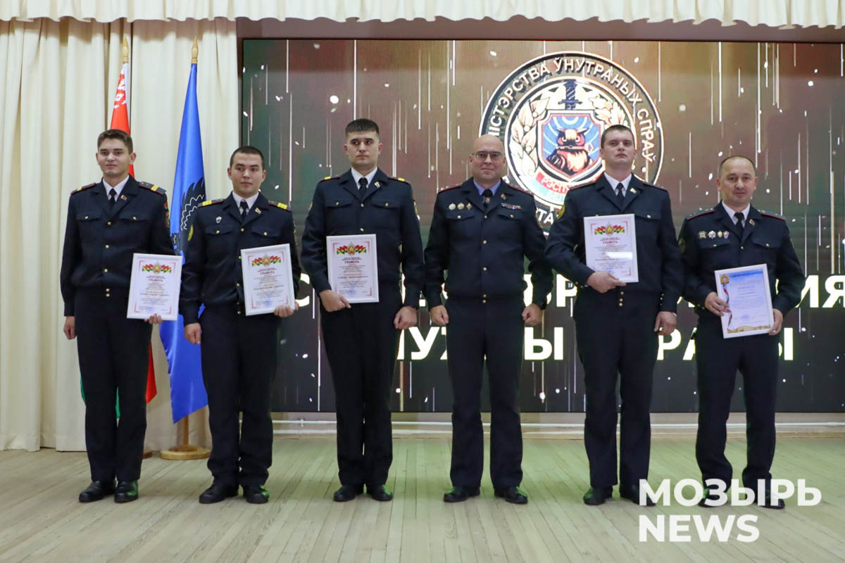 Благодарностью управления внутренних дел Гомельского облисполкома отмечен милиционер группы милиции прапорщик милиции Сергей Гриневич. Грамота ОВД Мозырского райисполкома вручена милиционеру-водителю оперативно-дежурной службы прапорщику милиции Владимиру Колоцею, милиционеру-водителю группы задержания старшему сержанту милиции Сергею Алейнику, милиционеру-кинологу группы задержания сержанту милиции Владимиру Морозову, милиционеру роты милиции младшему сержанту Алексею Змушко.