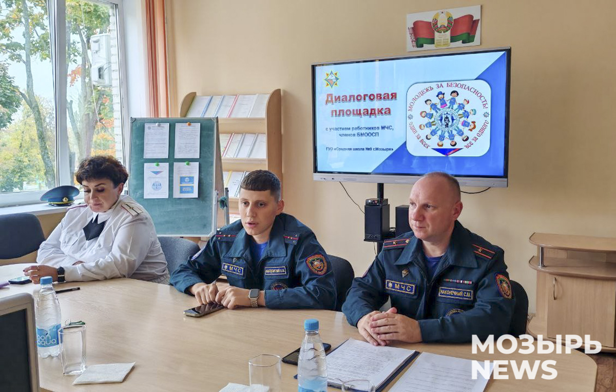В рамках республиканской акции «Молодежь за безопасность», проводимой под эгидой МЧС, на базе средней школы № 9 города Мозыря состоялась диалоговая площадка, объединившая работников МЧС, представителей Мозырского комбината противопожарных работ и учащихся из числа активистов Белорусской молодежной общественной организации спасателей-пожарных (БМООСП).