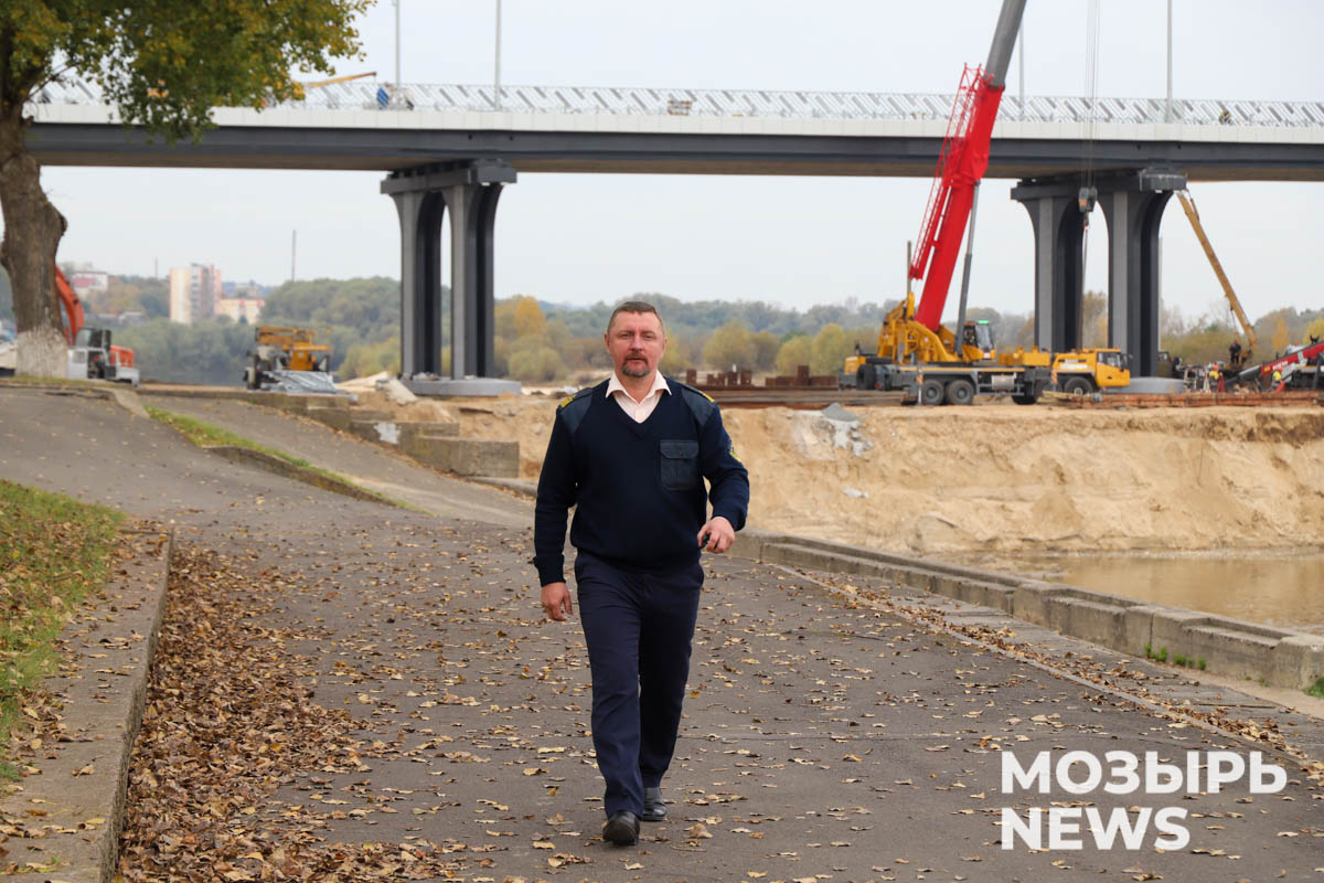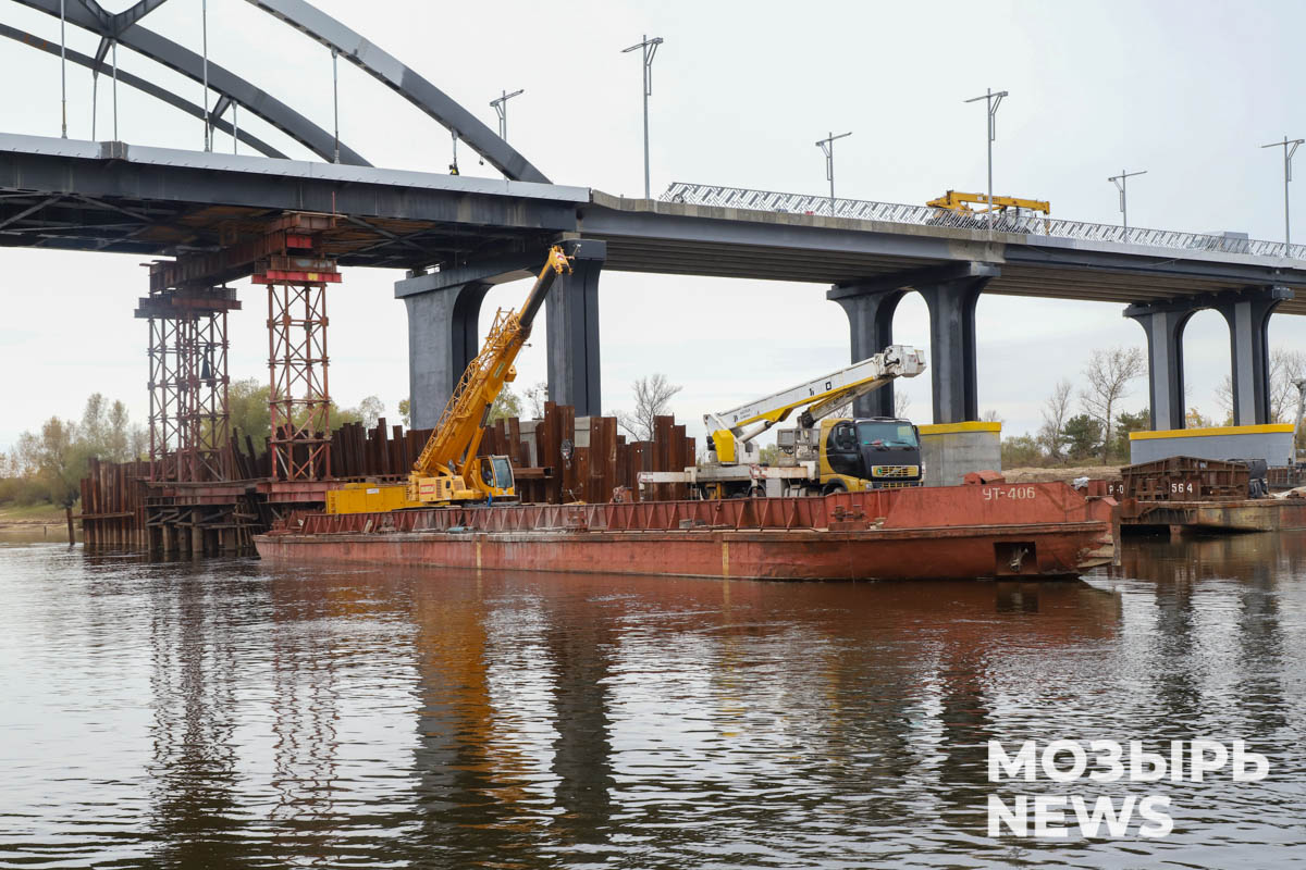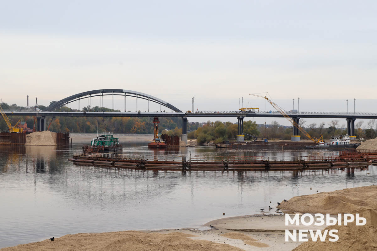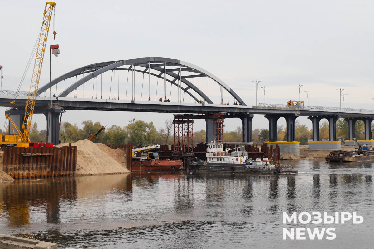 В эти дни внимание СМИ и общественности буквально приковано к мозырскому мосту. И не удивительно: после завершения работ эта автомобильная переправа обещает стать настоящей достопримечательностью Беларуси благодаря многим архитектурным решениям: необычной арочной конструкции, многочисленным мачтам освещения, наличием лифтов.