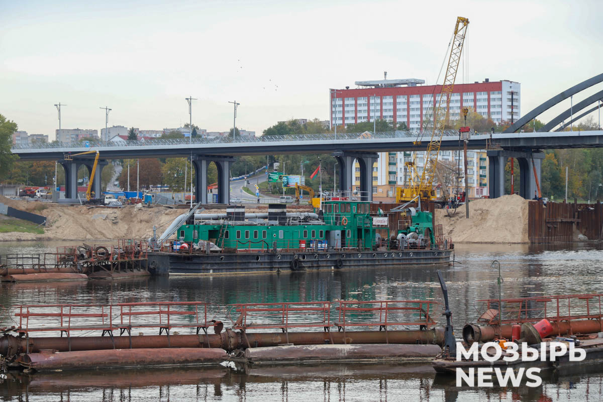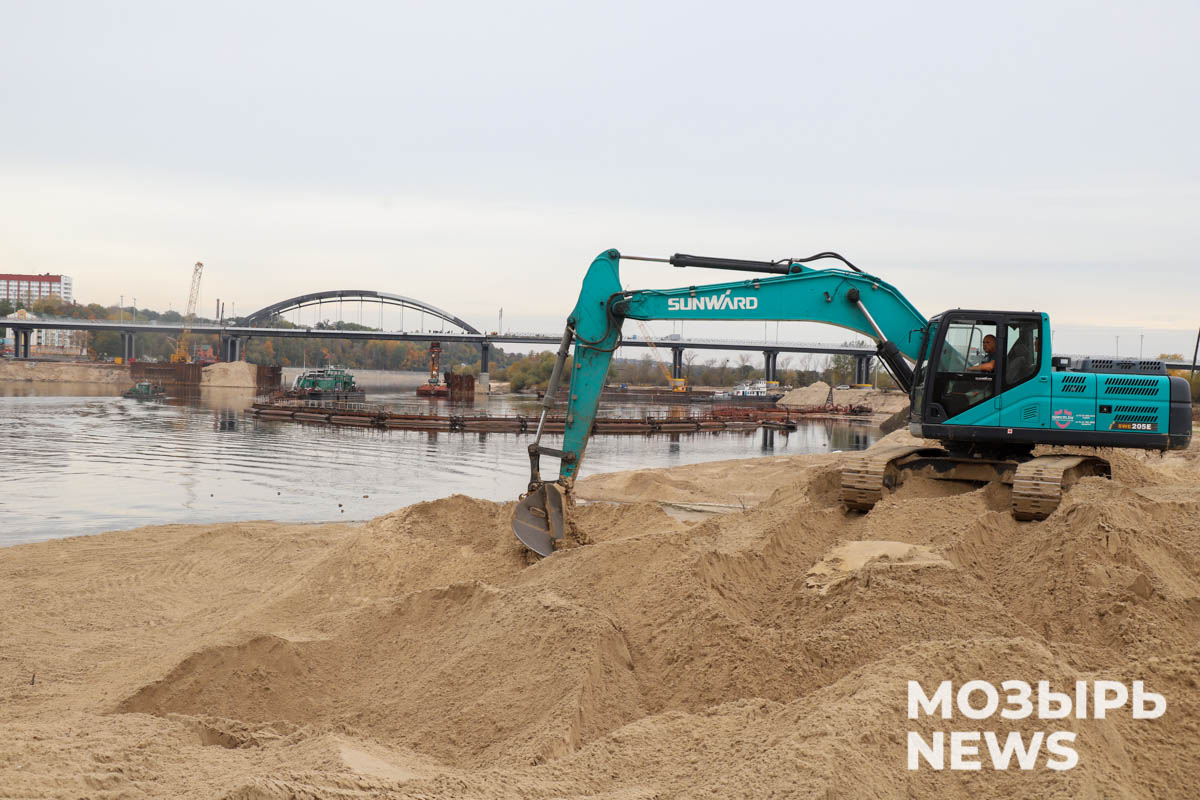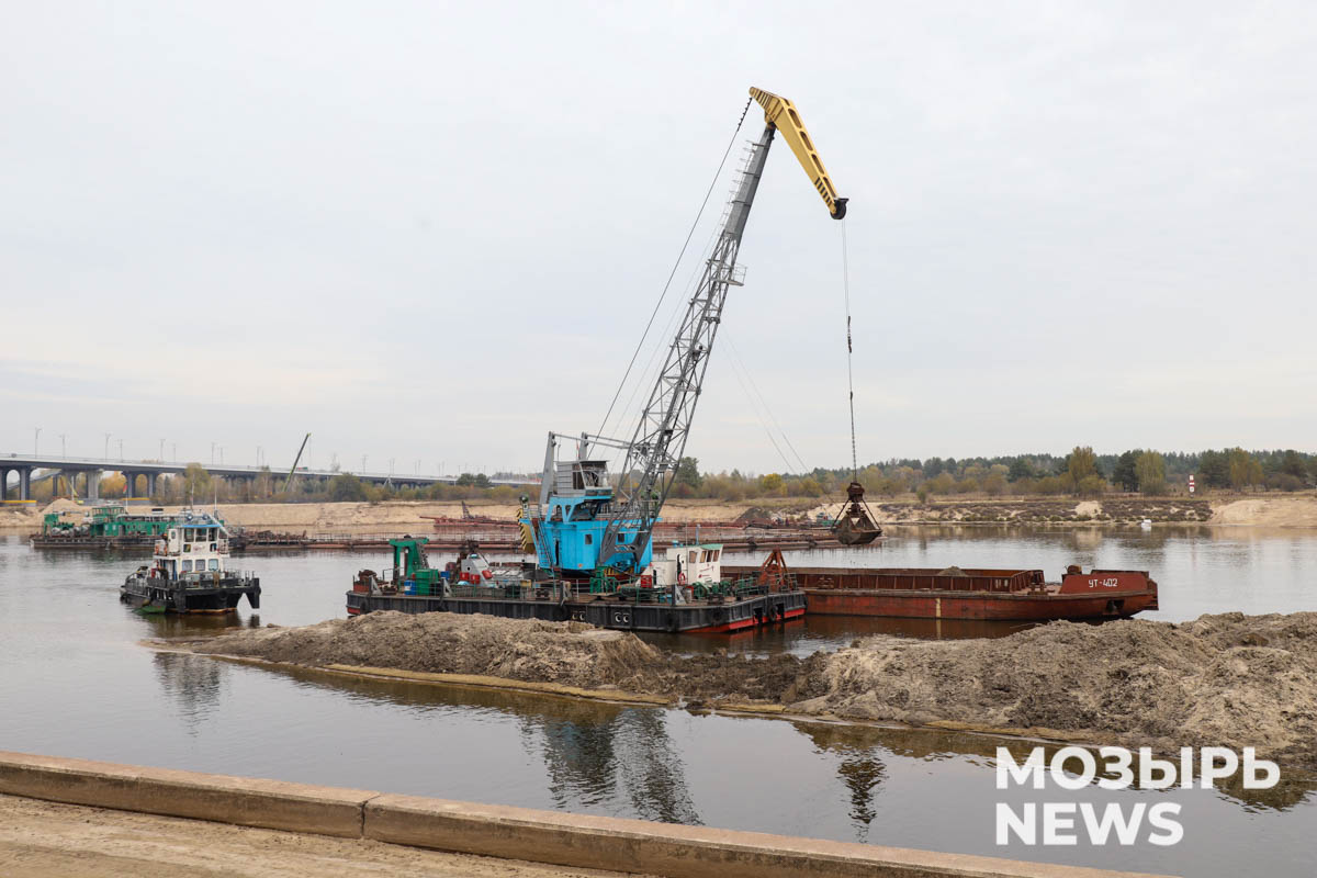 – В первую очередь мы намыли и подали речной песок для строительства моста. Невзирая на искусственно созданные трудности, связанные с его добычей, необходимый объем песка наш филиал намыл и реализовал. Из него были сформированы насыпи, подготовлены строительные площадки, сформированы подъездные пути. Наш песок в том числе использовался для заливки бетона и подобных нужд. Речь – о более 130 тысячах тонн песка, – говорит Андрей Козел. – Плюс мы предоставляли в аренду наши плавсредства, именно с наших барж осуществлялся демонтаж старых конструкций моста. Как показала практика, это было правильное инженерное решение – этим мы сэкономили время. Сейчас самый главный объем наших работ, связанный с мостом, заключается в уборке строительных площадок, которые сформированы в шпунтовых коробках. Мы заняты перевалкой песка, уборкой образований, которые мозыряне прозвали «островами».