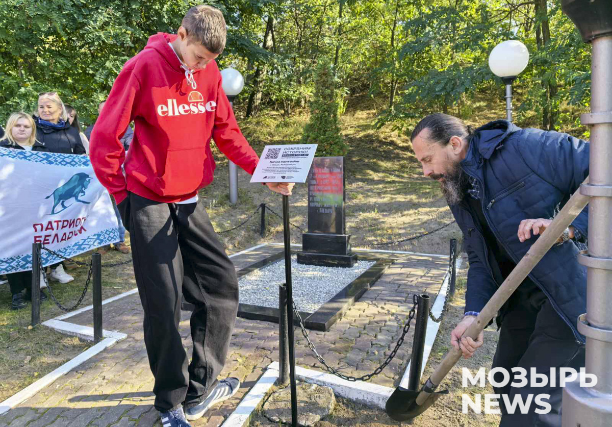 На Мозырщине продолжается реализация патриотического проекта «Сохраним историю»: в еще одном месте, где фашисты пролили кровь наших людей в годы Великой Отечественной войны, появилась специальная табличка, которая с помощью нанесенного QR-кода переведет на платформу, где подробно расскажут о трагических событиях на нашей многострадальной земле.