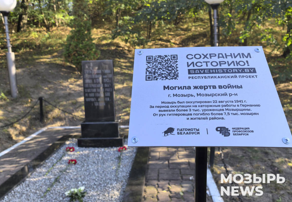 На Мозырщине продолжается реализация патриотического проекта «Сохраним историю»: в еще одном месте, где фашисты пролили кровь наших людей в годы Великой Отечественной войны, появилась специальная табличка, которая с помощью нанесенного QR-кода переведет на платформу, где подробно расскажут о трагических событиях на нашей многострадальной земле.