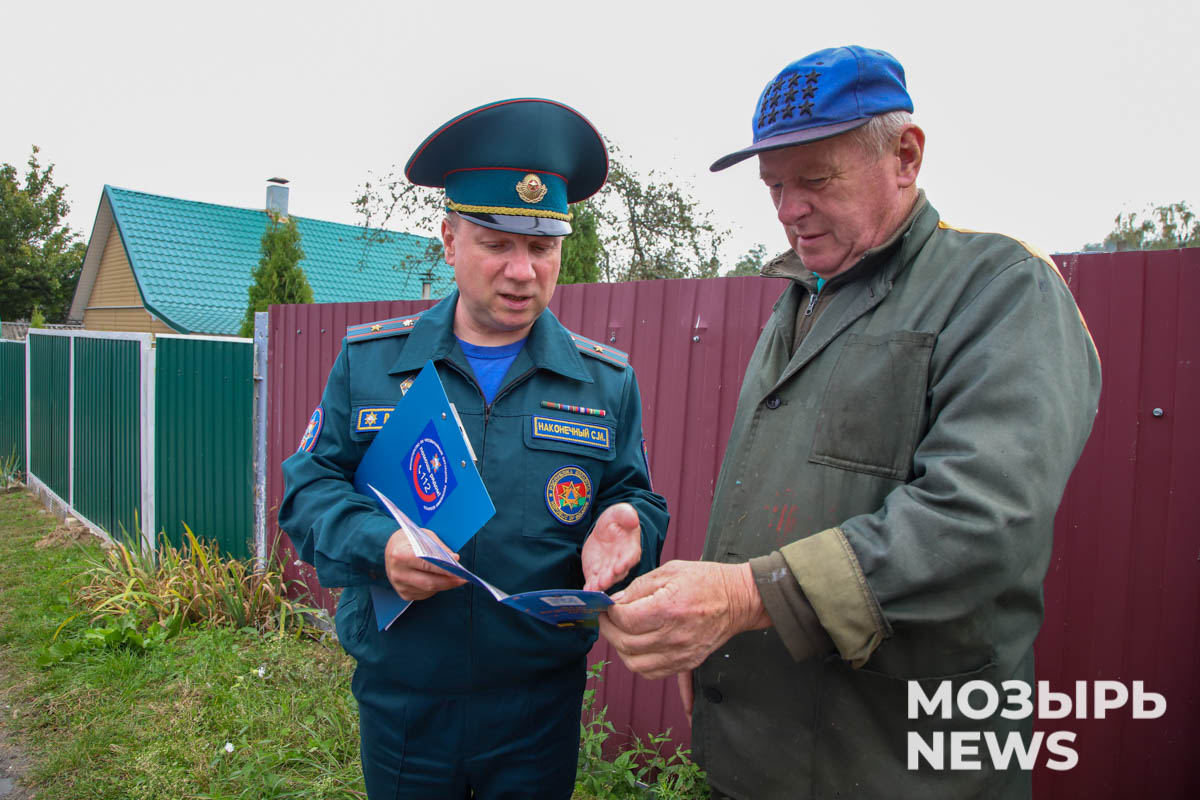 Вместе со старшим инспектором сектора пропаганды и взаимодействия с общественностью Мозырского ГРОЧС Сергеем Наконечным, инспектором сектора пропаганды и взаимодействия с общественностью Ксенией Чигиной и представителем Мозырского комбината противопожарных работ Юрием Гвоздевым мы отправляемся в частный сектор Мозыря.
