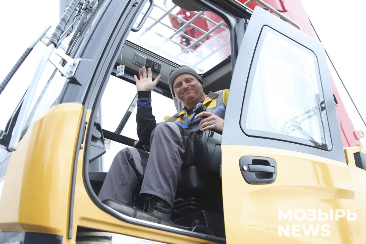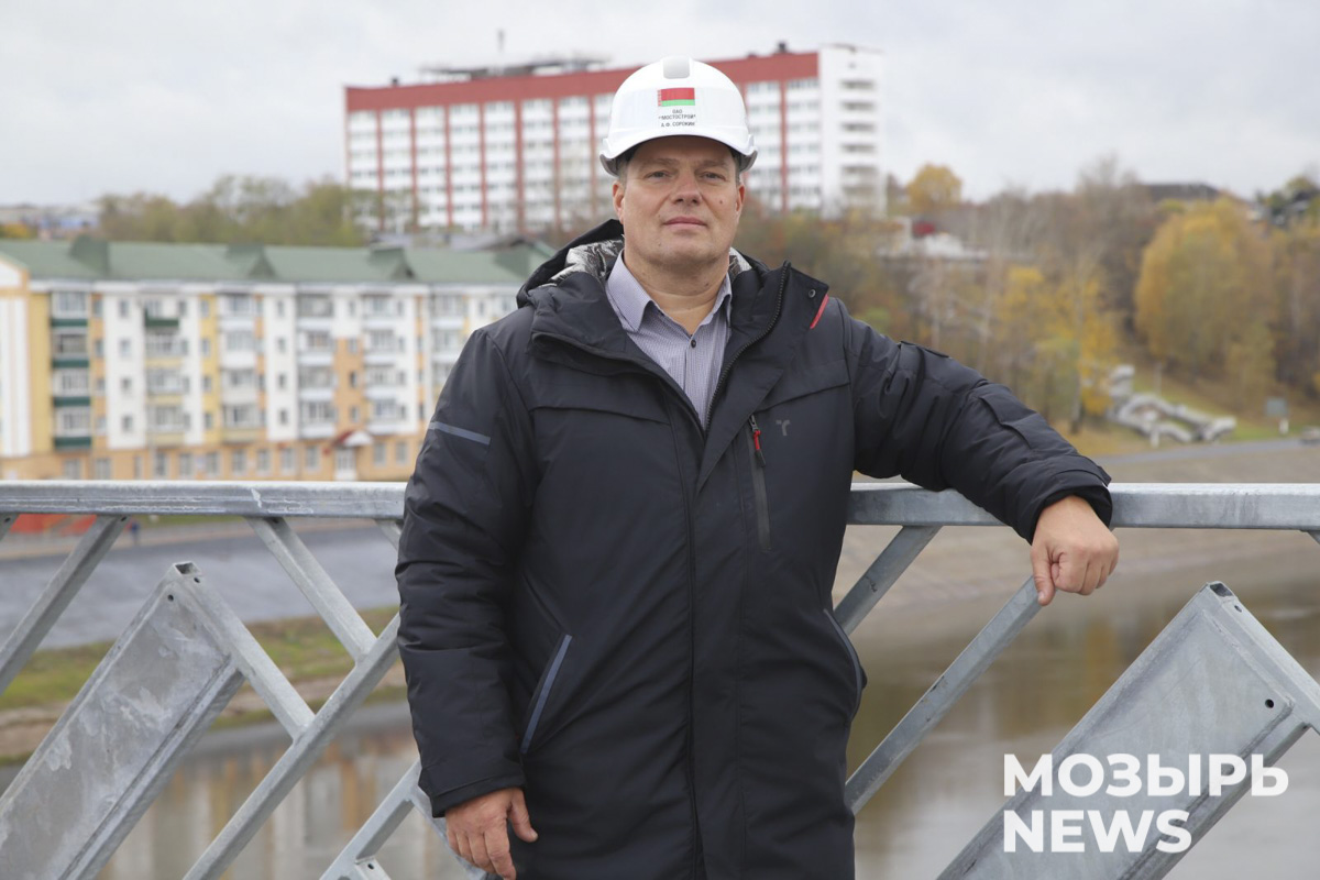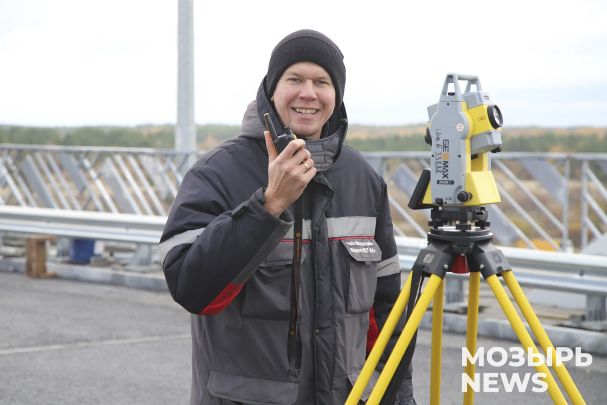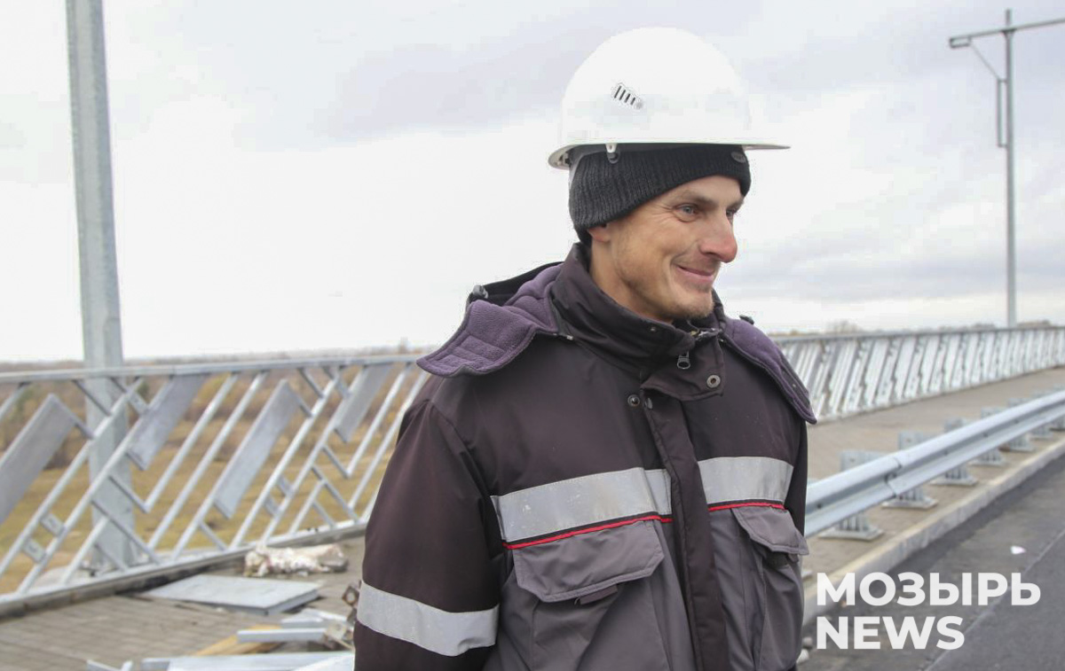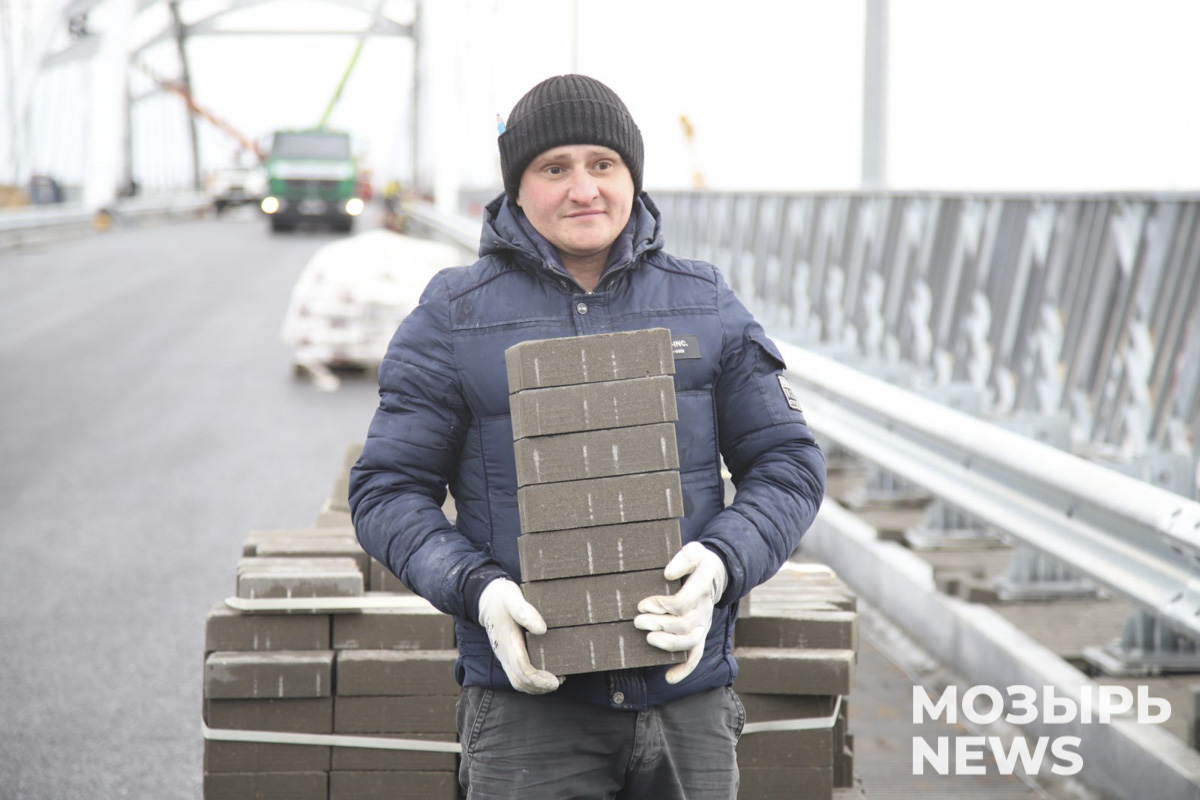 Всегда приятно встретить на мосту земляков-мозырян. Вадим Куймин – профессиональный каменщик. Он провел уже 30 лет на стройке, на его счету несколько коттеджей, но он не смог остаться в стороне от мозырской стройки XXI века.