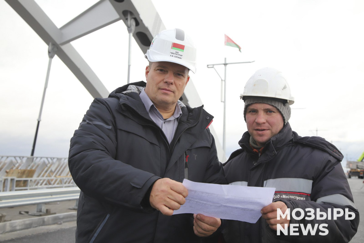 «Осталось также доделать барьерное перильное ограждение (На момент нашего репортажа планировалось закончить эти работы за 4 дня. – Прим. авт.), – комментирует старший прораб филиала «Мостоотряд № 58» ОАО «Мостострой» (г. Брест) Александр Ищенко. – Освещение пока включается в тестовом режиме. Кстати, репортажи местных блогеров в ТикТоке о включении освещения моста были не совсем верные. Это были наши светодиодные фонари, при свете которых мы работали».