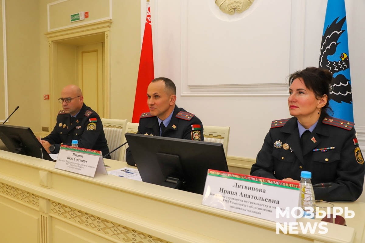 Также во встрече с сотрудниками Мозырского РОВД приняли участие начальник ОВД Мозырского райисполкома полковник милиции Дмитрий Кротов, начальник управления по гражданству и миграции УВД Гомельского облисполкома полковник милиции Ирина Литвинова.