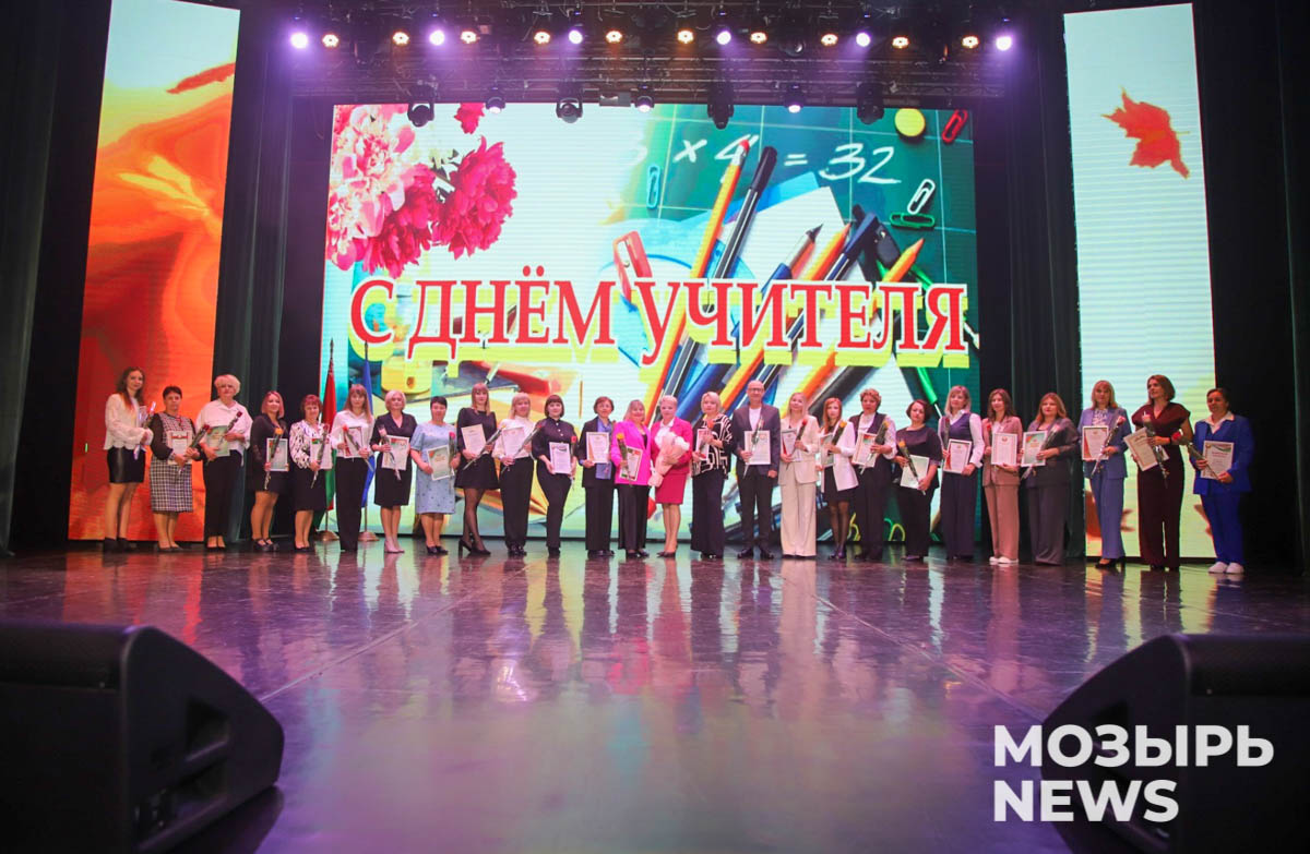Лучшим педагогам были вручены Грамоты Мозырского районного исполнительного комитета за многолетний добросовестный труд в системе образования, высокий профессионализм, большой личный вклад в воспитание подрастающего поколения. Наград были удостоены директор Слободской средней школы Алина Плыткевич, учитель английского языка гимназии им. Я. Купалы Вероника Орлова, заведующий Козенским детским садом № 1 Татьяна Миллер, заместитель директора СШ № 14 Алла Кондик, заместитель директора СШ № 15 Светлана Нежикова, заместитель директора Руднянской средней школы Николай Петричиц, учитель физической культуры и здоровья Бельской базовой школы Петр Канапацкий, учитель физической культуры и здоровья Козенской средней школы Александр Каменский, учитель трудового обучения и физики Барбаровской базовой школы Ольга Жуковская, заведующий детским садом № 19 Наталья Чистякова, учитель музыки и искусства СШ № 6 Светлана Прокопенко.