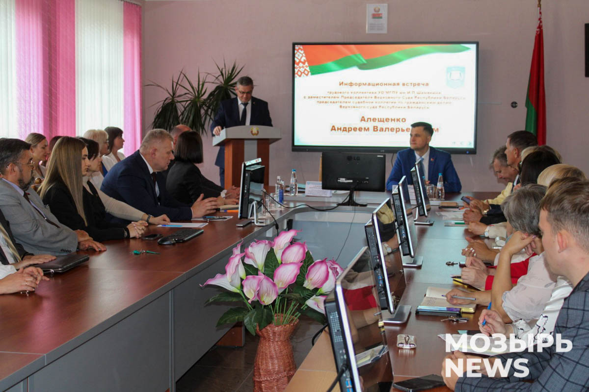 С коллективом Мозырского государственного педагогического университета имени И. П. Шамякина встретился заместитель Председателя Верховного Суда Республики Беларусь, председатель судебной коллегии по гражданским делам Верховного Суда Республики Беларусь Андрей Алещенко.