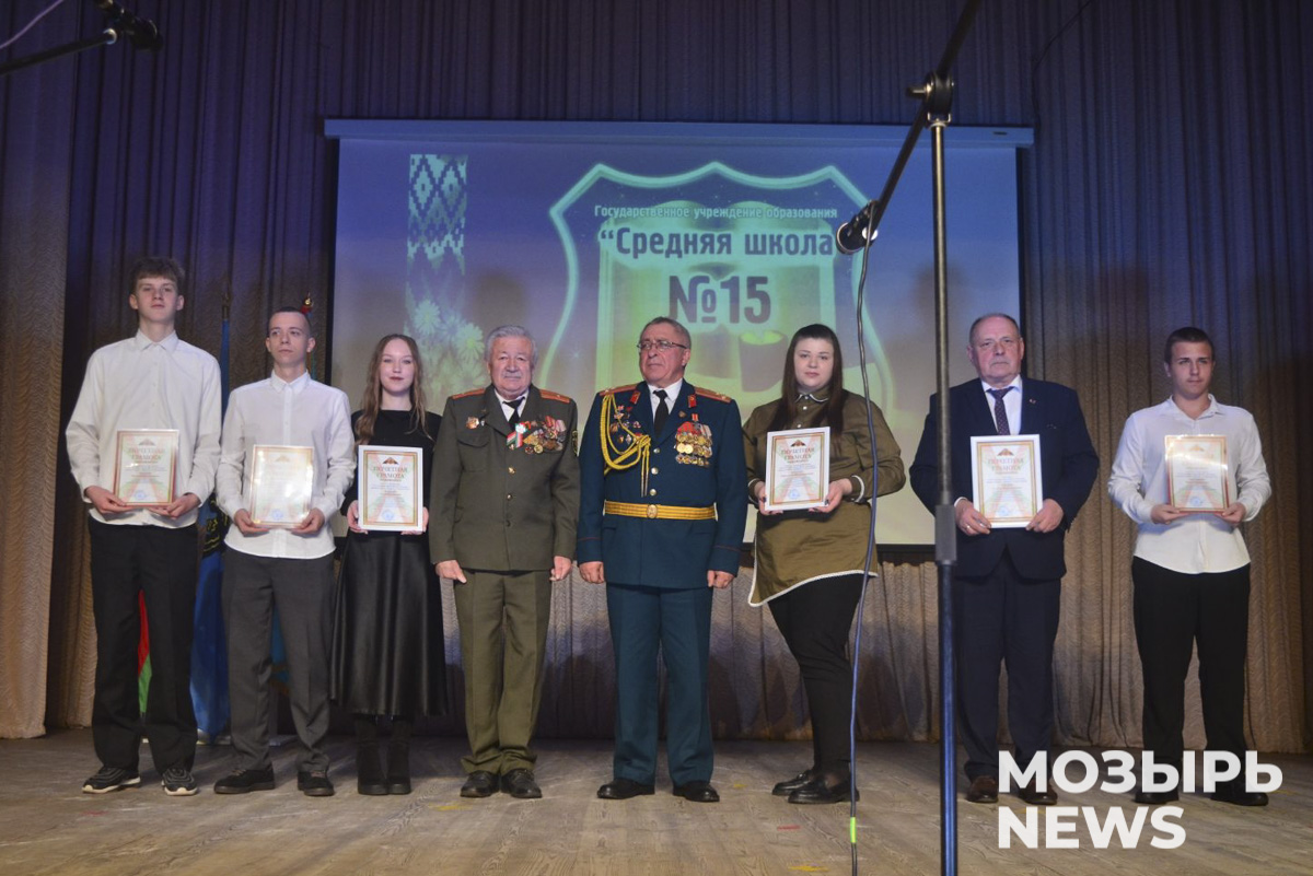 Поздравили ребят с этим событием специалисты отдела образования Мозырского райисполкома, представители правоохранительных органов, силовых структур, депутаты Мозырского районного Совета депутатов, представители ветеранских организаций Вооруженных Сил, Союза ветеранов войны в Афганистане, ветераны военной разведки и силовых структур, ветераны труда, родители и педагоги СШ № 15.