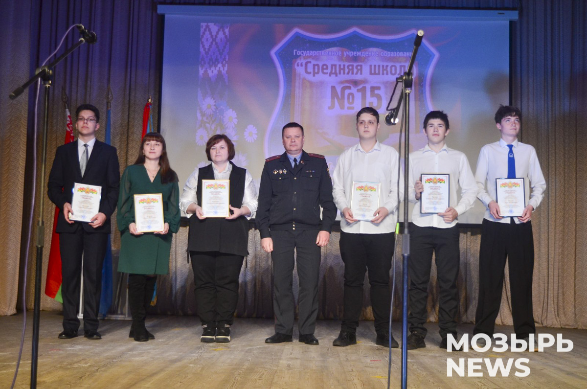 Наградили лучших педагогов и учащихся, а также сказали им напутственные слова почетные гости праздника: заместитель комиссара военного комиссариата Мозырского, Ельского и Наровлянского районов Игорь Шелег, заместитель начальника отдела внутренних дел Мозырского районного исполнительного комитета по идеологической работе и кадровому обеспечению Вячеслав Коваленко, заместитель начальника пожарного аварийно-спасательного отряда № 4 Мозырского горрайотдела по чрезвычайным ситуациям Тимур Волосюк, заместитель начальника второго следственного отделения Мозырского районного отдела следственного комитета РБ Юрий Полковниченко, и. о. председателя Мозырской районной организации ОО «Белорусский союз ветеранов войны в Афганистане» Наталья Коноплич.