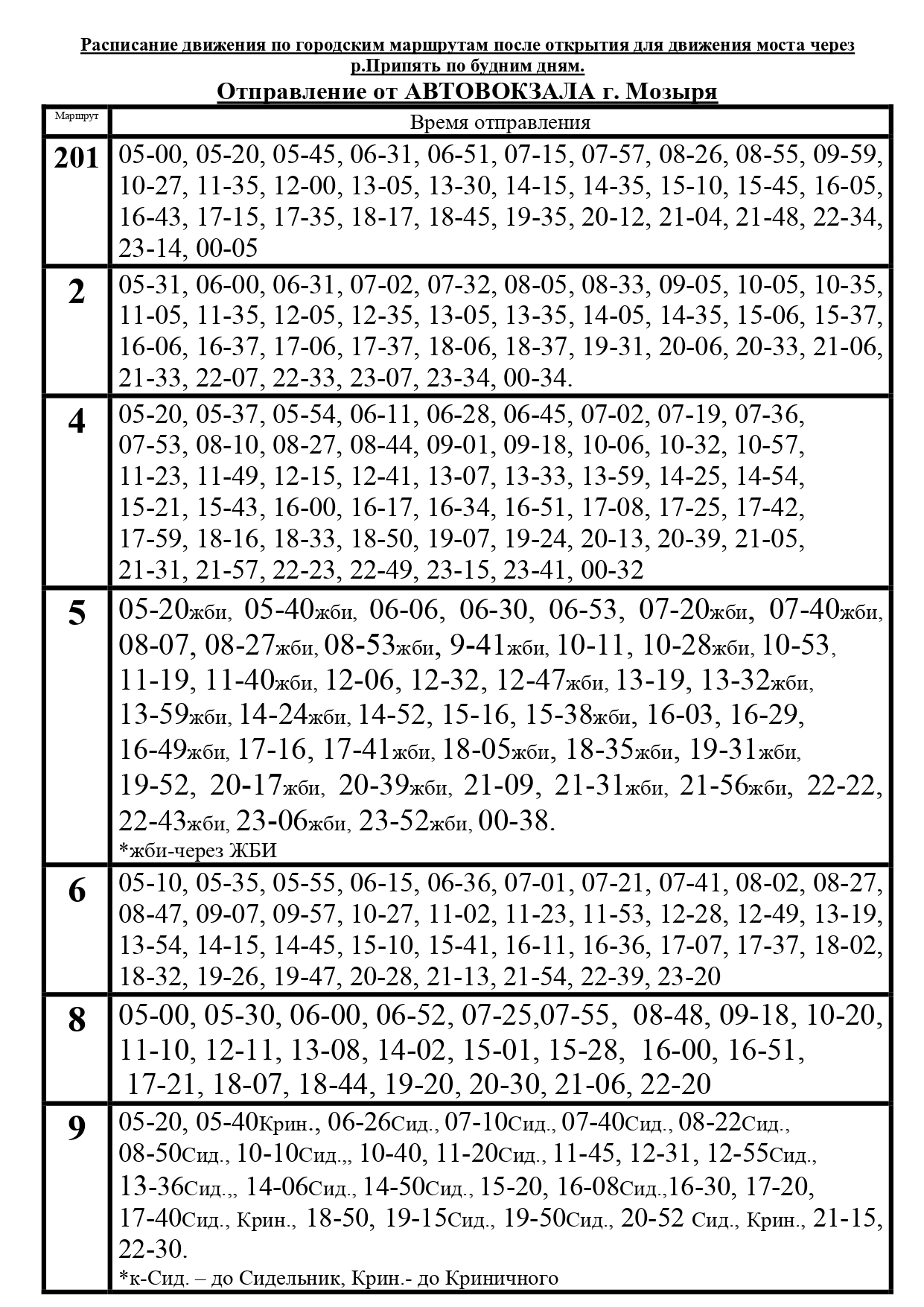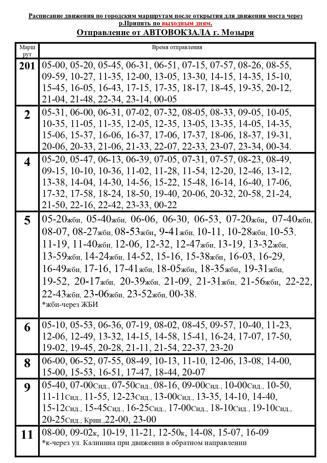 Автобусный парк №2 информирует о новом расписании движения городских маршрутов и пригородного маршрута №201 по выходным дням после открытия моста через реку Припять.