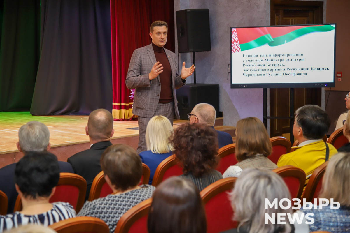 В Мозырском драмтеатре глава ведомства в эти минуты проводит встречу с работниками отрасли культуры Мозырского района. Диалог посвящен теме, обозначенной Единым днем информирования: «Кибербезопасность и профилактика киберпреступности».