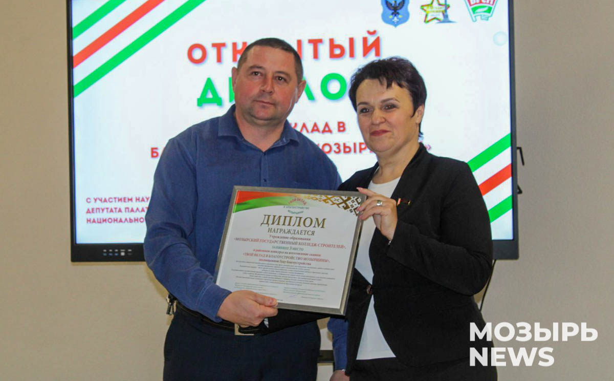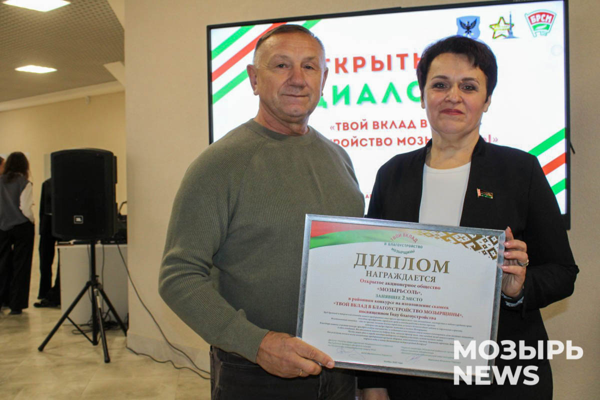 В Мозырском районе, как проинформировала модератор диалога Вероника Павлова, по инициативе парламентария Аллы Науменко в октябре стартовал конкурс для работающей молодежи под названием «Твой вклад в благоустройство Мозырщины». Идеей конкурса стало изготовление оригинальных скамеек и их установка на территории одного из скверов города. Организатором конкурса вместе с молодежным активом Мозырщины выступил райком ОО «БРСМ».