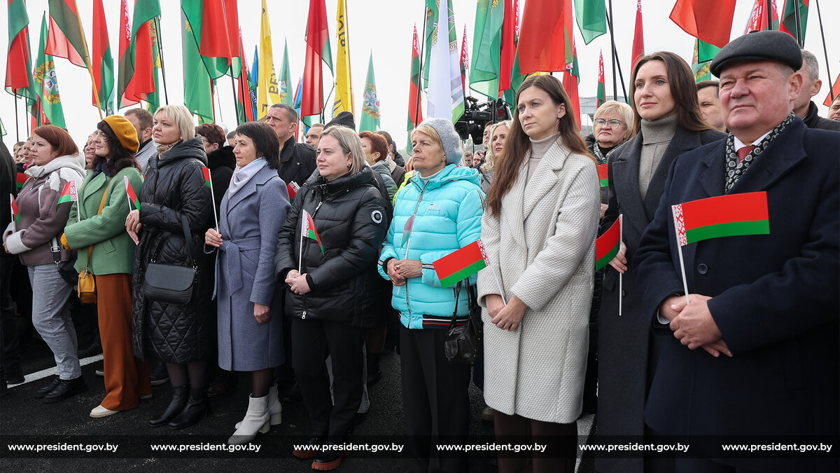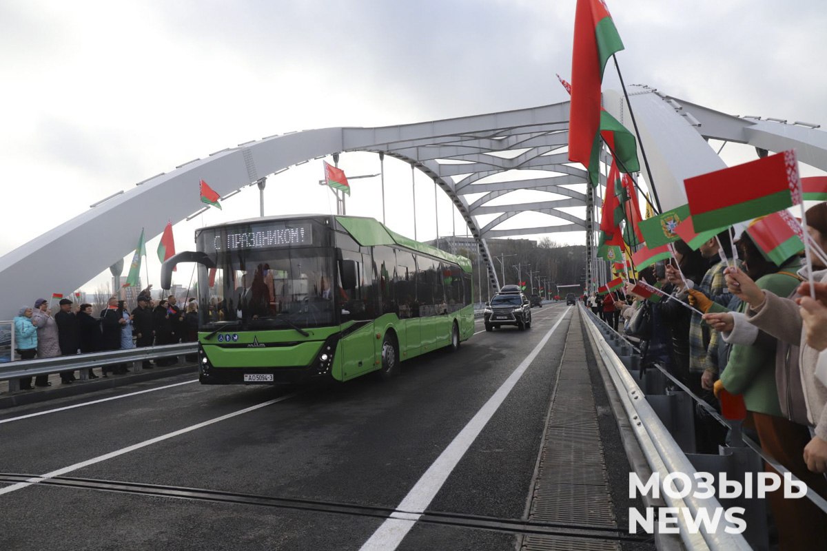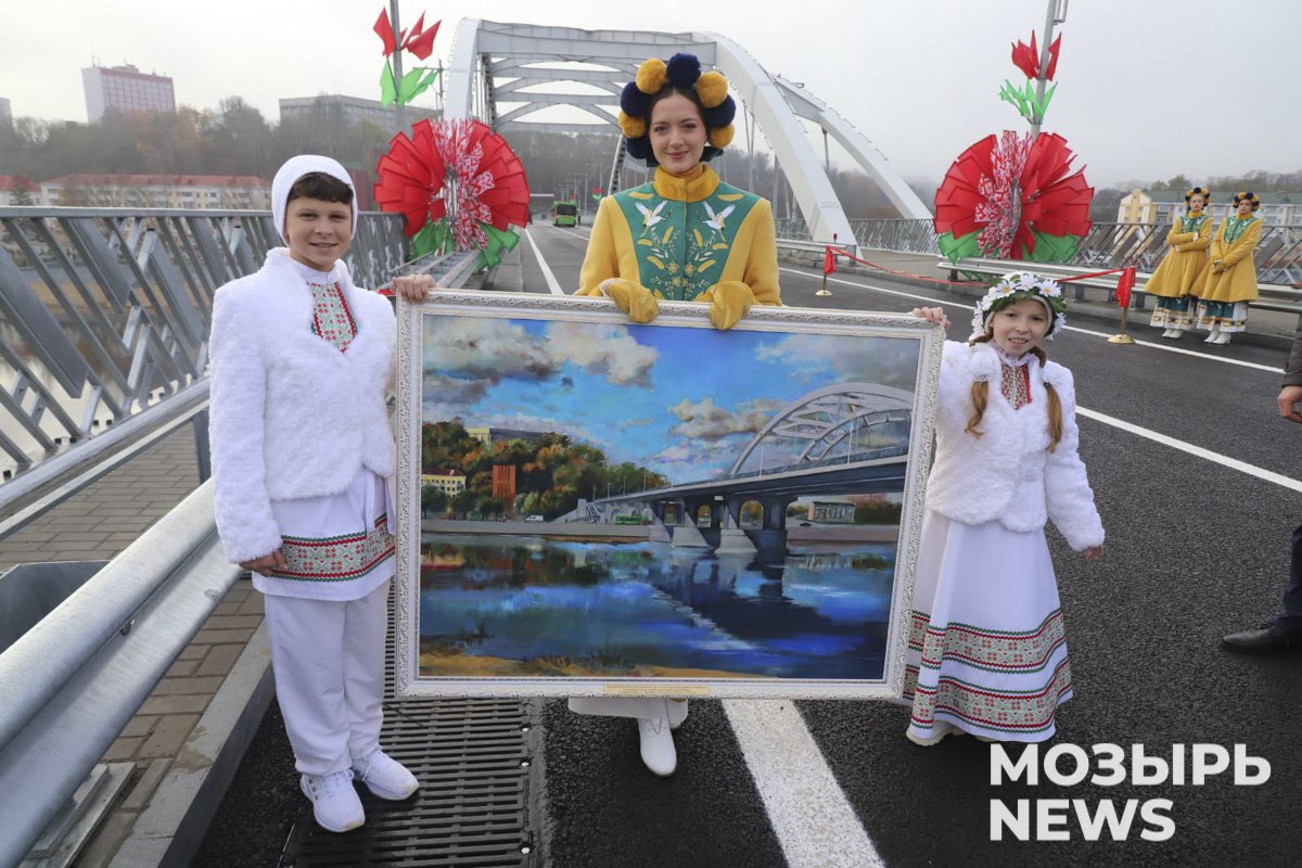 Глава государства в торжественной обстановке перерезал символическую красную ленточку. На церемонию были приглашены представители трудовых коллективов дорожных организаций, участвовавших в строительстве моста, жители Мозырского района. По сложившейся традиции ко Дню Октябрьской революции людям преподносят подарки — значимые, масштабные объекты, и обновленный мост — один из них.