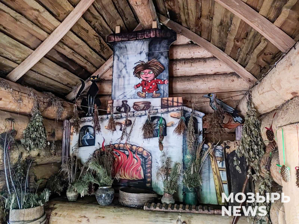 Следующая локация вызвала не меньший интерес. Мы зашли на поляну сказок, где в избушке Бабы Яги можно увидеть не только таинственную печку, но и при желании покататься на метле.