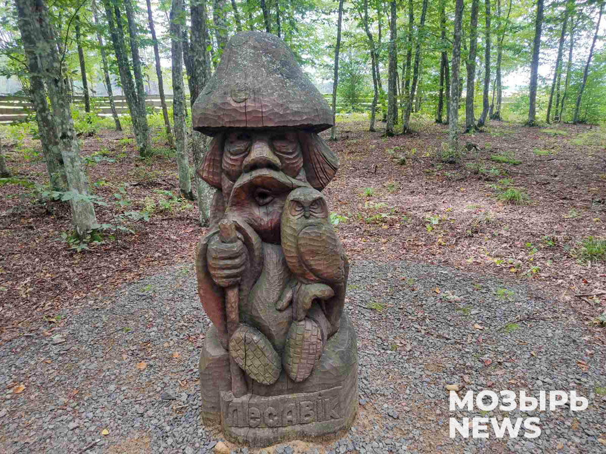 Оставив позади улицы большого поселка, миновали кукурузное поле, подъехали к лесу и остановились у центральных ворот парка. На этом месте было старое городище, в пятом веке заселенное славянами. Сегодня об этом напоминают только деревянные идолы языческих богов. Заглянули в домик кудесника – так на Полесье называли людей, которые могли ворожить, исцелять болезни, управлять природными стихиями. Жилище стоит на самом высоком месте, и к нему ведут 7 ступеней – по количеству дней недели. Когда поднимаетесь наверх, все плохое оставляйте за порогом. При спуске решите, что хотите приобрести для себя и для вашего рода, по древним обычаям загадайте желание и завяжите ленточку на ветке дерева.