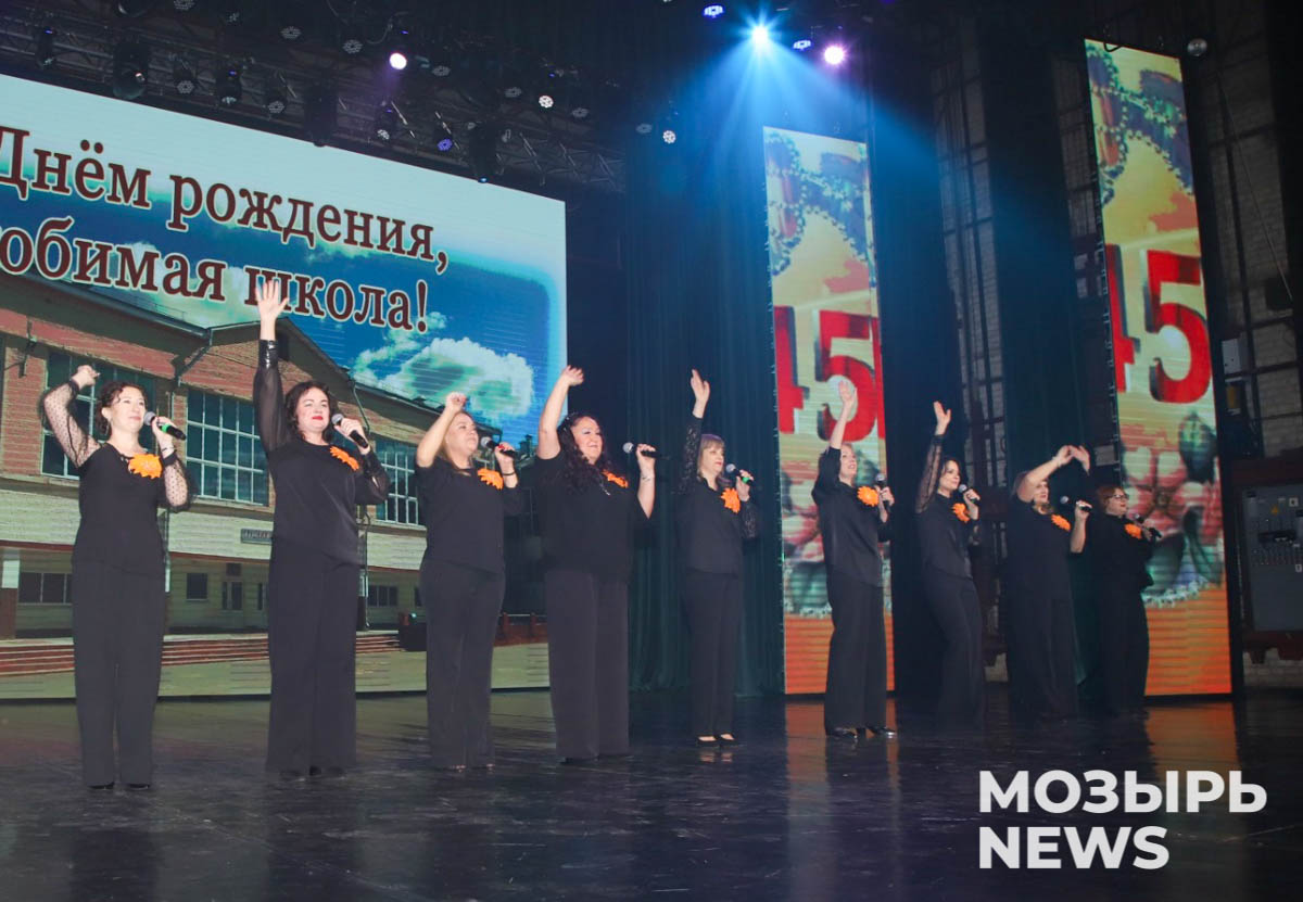 Слова поздравления по случаю 45-летия, подкрепленные материальным подарком, прозвучали в адрес коллектива школы от Почетного гражданина города Мозыря, депутата, предпринимателя и мецената Воскана Чобаняна.