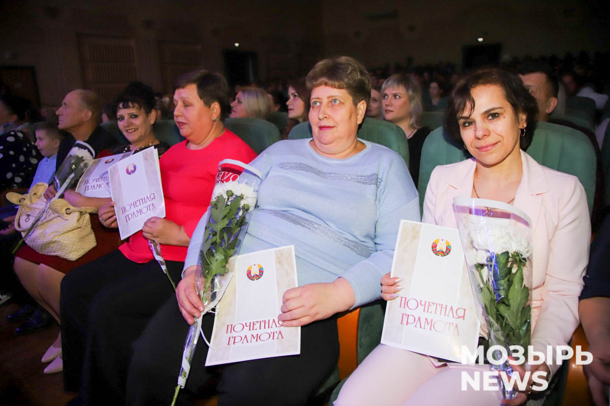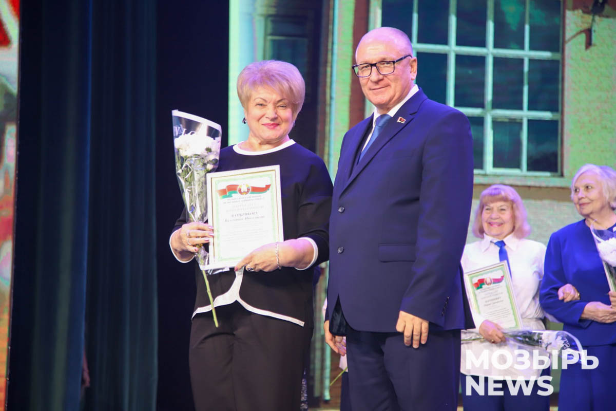 Феликс Федорович в своем обращении к присутствующим отметил важную и огромную роль педагогов в формировании личности граждан нашей страны, профессионализм и многолетний добросовестный труд в системе образования. За особый вклад в систему образования он вручил Почетные грамоты и Благодарности Мозырского районного исполнительного комитета ветеранам педагогического труда и нынешним учителям.
