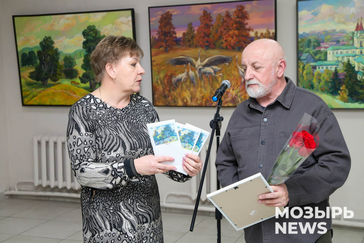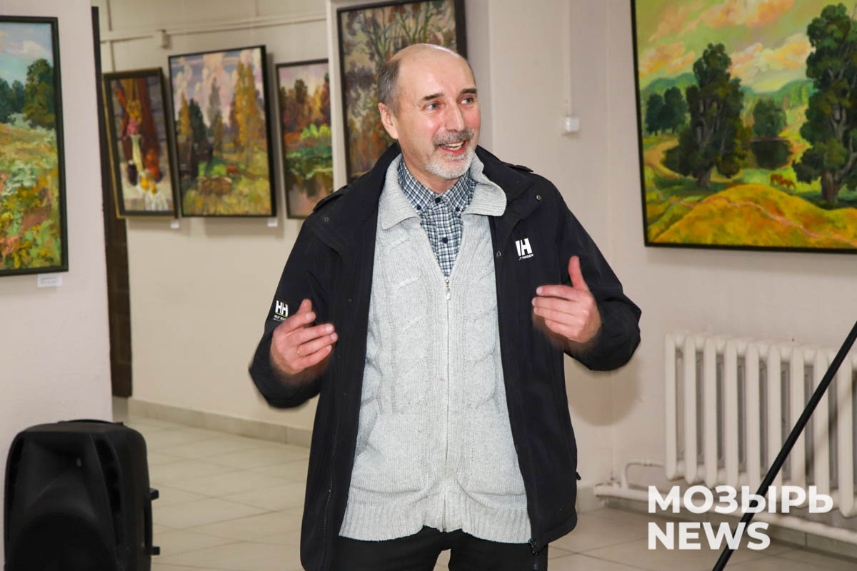 В своем приветственном слове Анатолий Наливайко поблагодарил организаторов своей девятой по счету персональной художественной выставки за возможность снова стать ближе к мозырскому зрителю, приветствовал всех людей, близких к искусству, и своих коллег-художников.