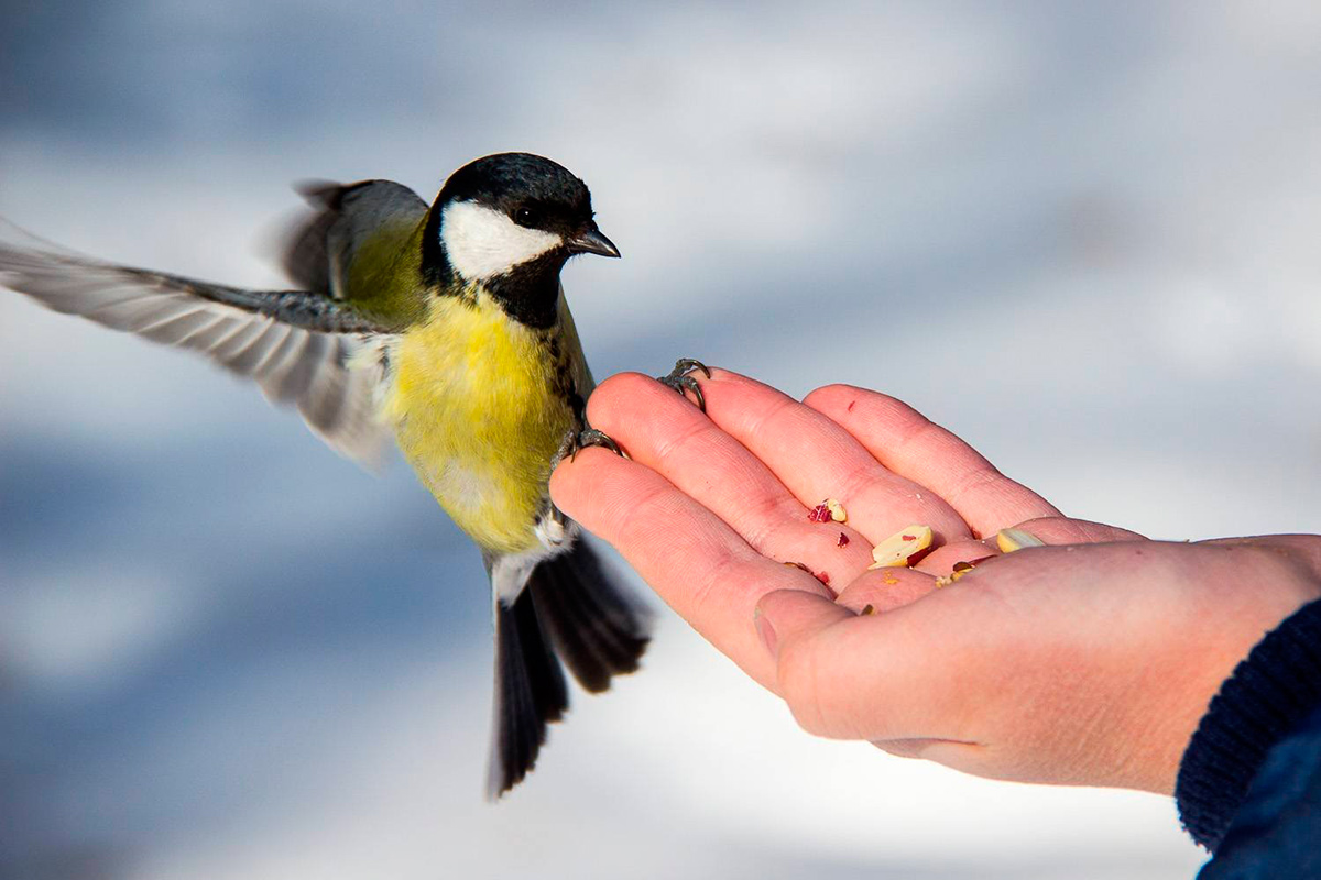 Подкармливать птиц можно при наступлении устойчивых температур ниже нуля градусов, а также при обилии снега, метелях и сильных ветрах.
