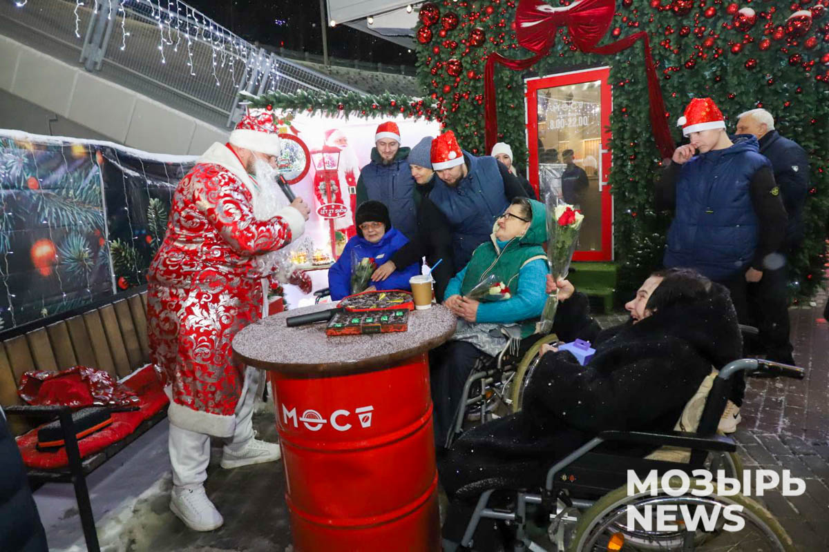 Впрочем, женщины не переставали восторгаться весь вечер. Они были изумлены и красотой нового моста, и почти волшебной встречей с Дедом Морозом у кофейни «Мост», и необычной теплой атмосферой. За чаем они напевали любимые новогодние мелодии, читали детские стихи, а также лично написанную лирику. В конце встречи добрый Дедушка Мороз, помимо сладостей, подарил каждой мозырянке умную колонку «с Алисой», а также порадовал букетами роз, чем растрогал до слез.