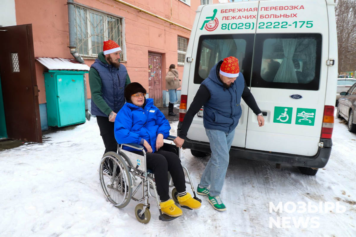 На днях, благодаря поддержке владельцев компании «Забота» и кофейни «Мост», три мозырянки, прикованные болезнью к кровати, смогли воочию полюбоваться новогодним убранством города, прокатиться по новому мосту через Припять, спеть любимые композиции с Дедушкой Морозом. Первое, что они попросили, – отвезти в церковь.