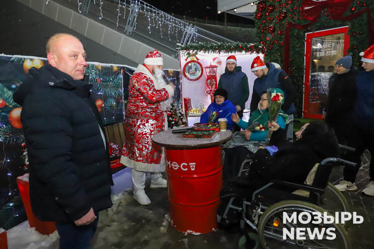 Впрочем, женщины не переставали восторгаться весь вечер. Они были изумлены и красотой нового моста, и почти волшебной встречей с Дедом Морозом у кофейни «Мост», и необычной теплой атмосферой. За чаем они напевали любимые новогодние мелодии, читали детские стихи, а также лично написанную лирику. В конце встречи добрый Дедушка Мороз, помимо сладостей, подарил каждой мозырянке умную колонку «с Алисой», а также порадовал букетами роз, чем растрогал до слез.