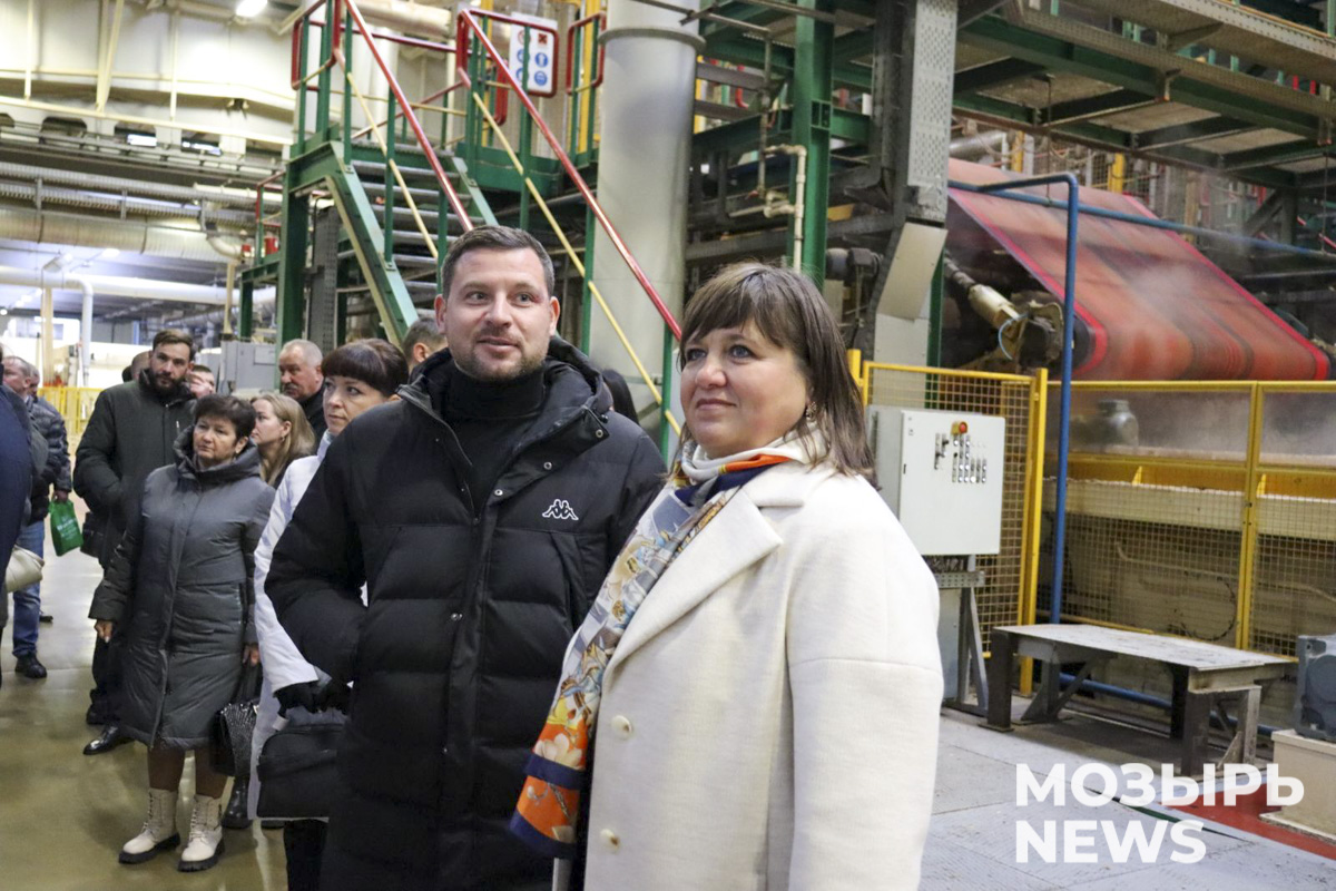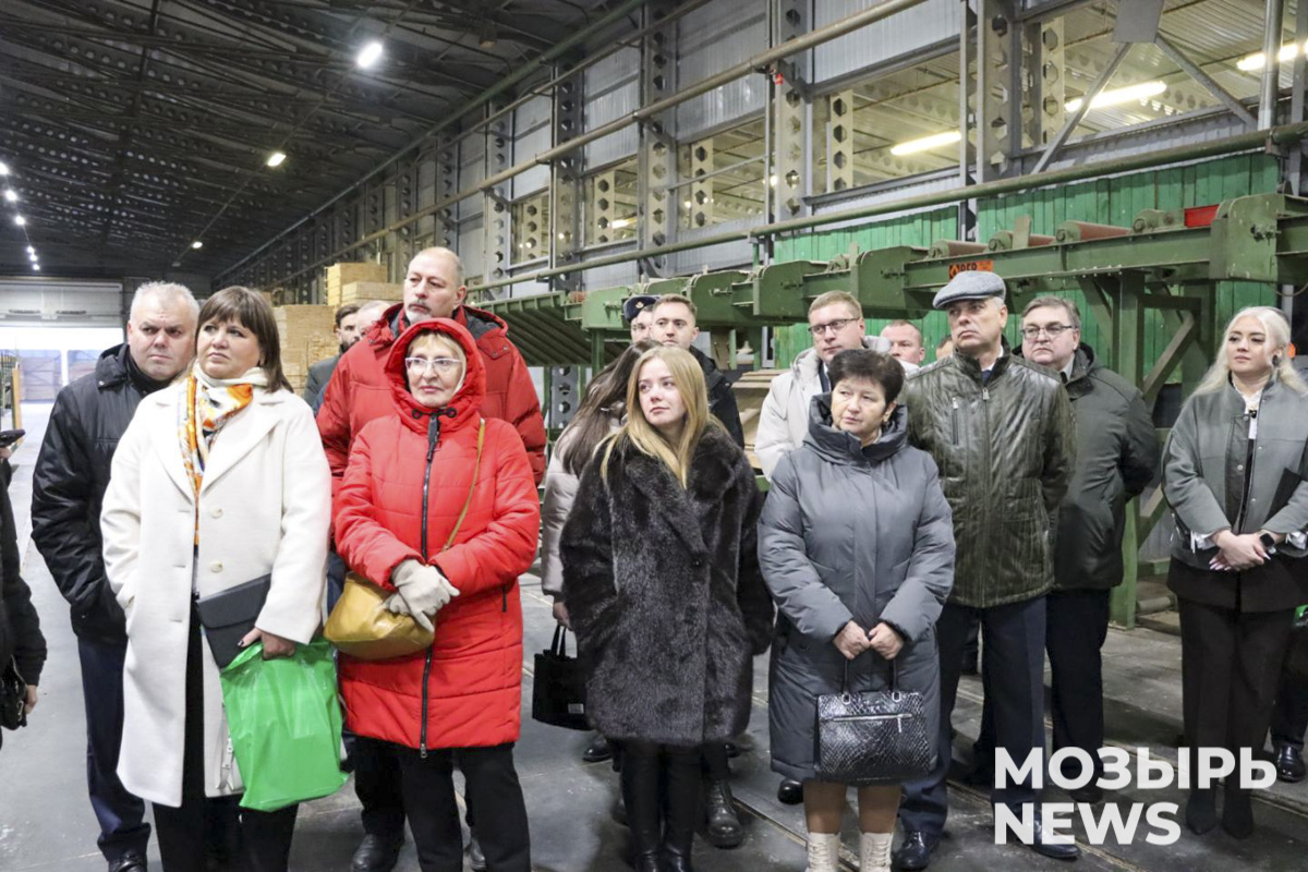 Для собравшихся провели экскурсию по производству, где они рассмотрели линии распиловки круглого леса, сушильные камеры, цеха изоляционно-древесноволокнистых плит, участки упаковки, производства щепы и волокна, а также бытовые помещения комбината: гардеробные, комнату приема пищи и будущий медпункт.