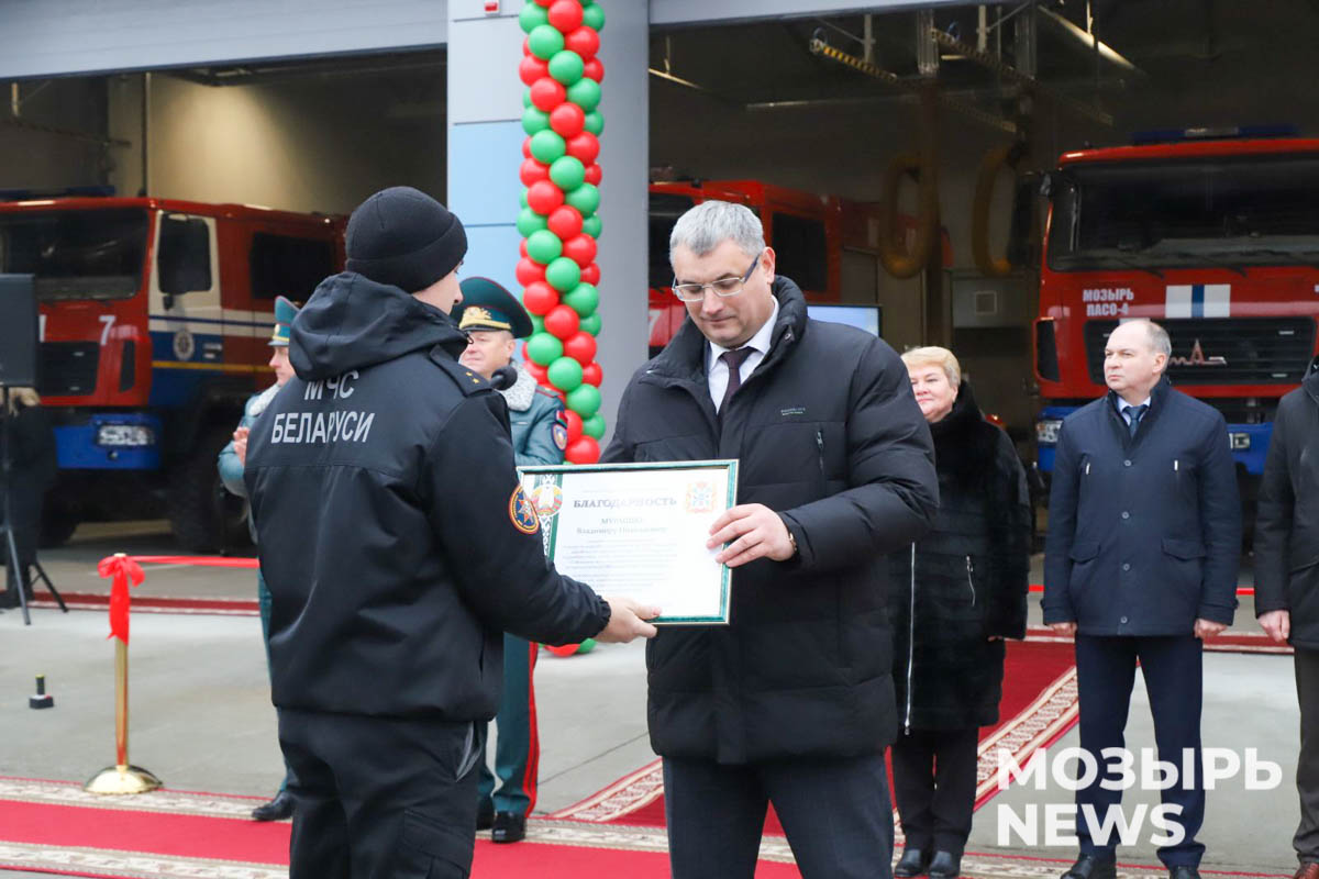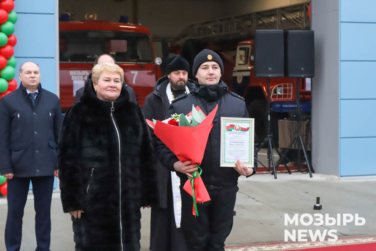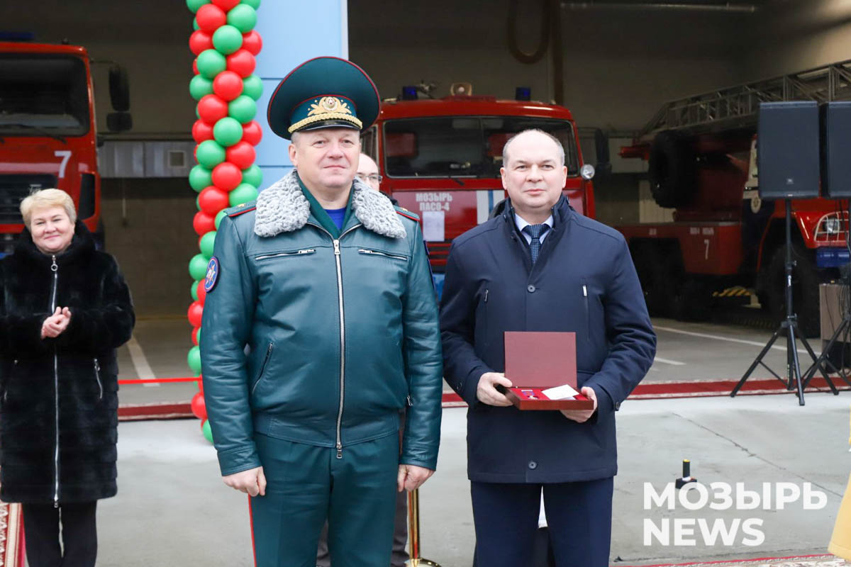 Приятным сюрпризом дня стало вручение Виталием Павловым подарочного сертификата на пожарную автоцистерну и легковой автомобиль начальнику Мозырского горрайотдела по чрезвычайным ситуациям полковнику внутренней службы Дмитрию Гуцу.После церемонии торжественного открытия объекта почетные гости ознакомились с организацией несения службы и условиями быта спасателей.
