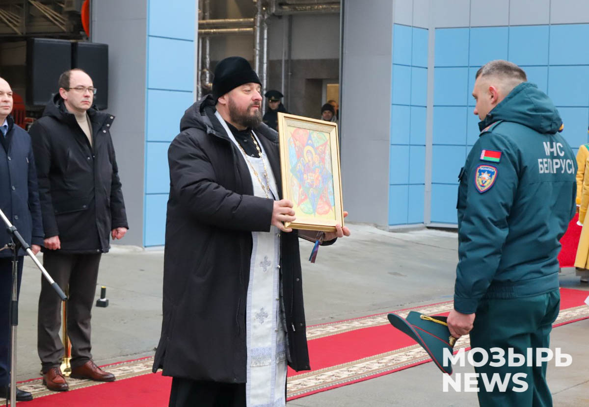 Священнослужитель передал в распоряжение части икону Божией Матери «Неопалимая Купина», а затем совершил церковный обряд освящения.Символический ключ от новой пожарной части его начальнику майору внутренней службы Денису Щавлику передал заместитель директора по строительству общества с ограниченной ответственностью «Никова» Глеб Ковалёв.