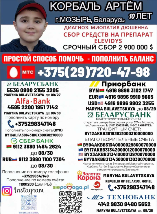 У мальчика диагностировано сложнейшее генетическое заболевание — миопатия Дюшенна–Беккера. Дети с таким диагнозом постепенно теряют способность ходить, стоять, глотать и дышать из-за разрушения мышц.
