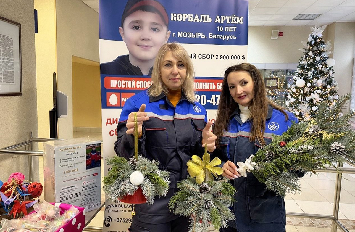 Работники Мозырского НПЗ и руководители творческих кружков «Старт» собрали красивые хвойные композиции и подготовили чудесные новогодние сувениры и украшения. Все средства, собранные во время акции, будут направлены на специальный счет для покупки препарата ELEVIDYS, стоимость лечения которым огромна — почти 3 миллиона долларов.
