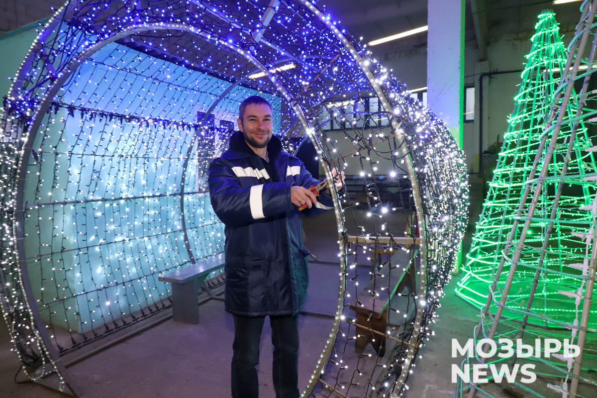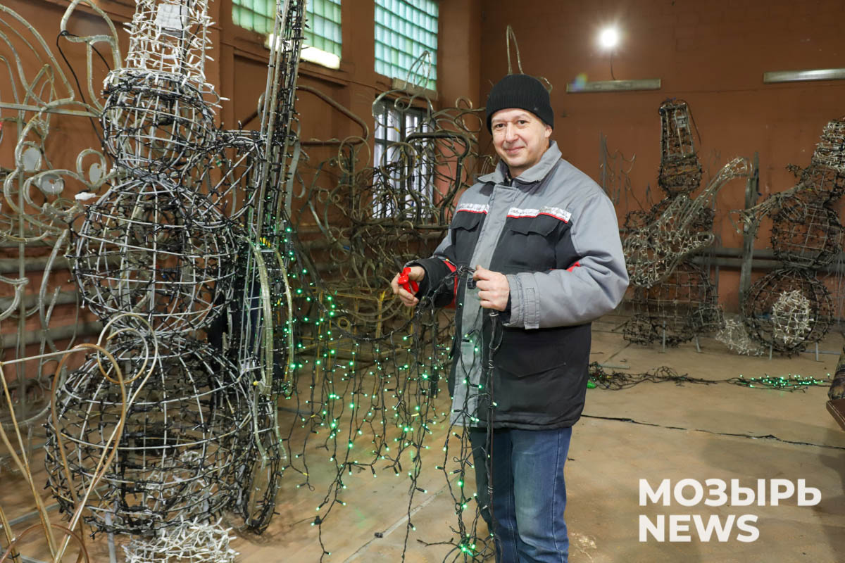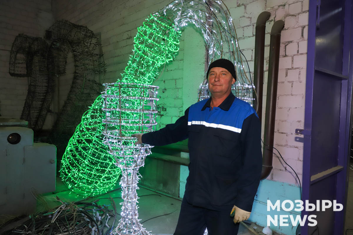Вот как сам Руслан Викторович рассказал о своей работе на благо любимого города: «Сначала с будущими фигурами работает сварщик, потом их красят, а мы уже окутываем их гирляндами. Заниматься уличной анимацией мы начинаем еще в конце весны, когда снимаем все гирлянды, потому что от ультрафиолета летом все приходит в негодность, рассыхается изоляция и лопается. В этом году с семьей планируем много гулять по Мозырю. Хочу, чтобы дети чувствовали волшебную атмосферу наступающего Нового года».