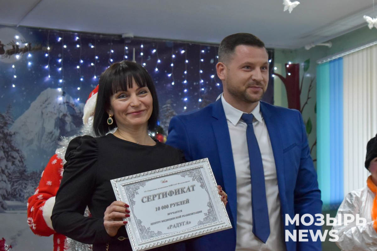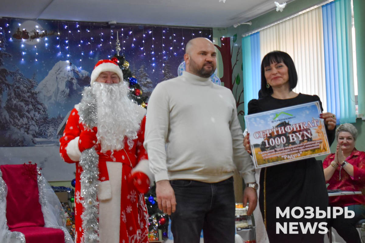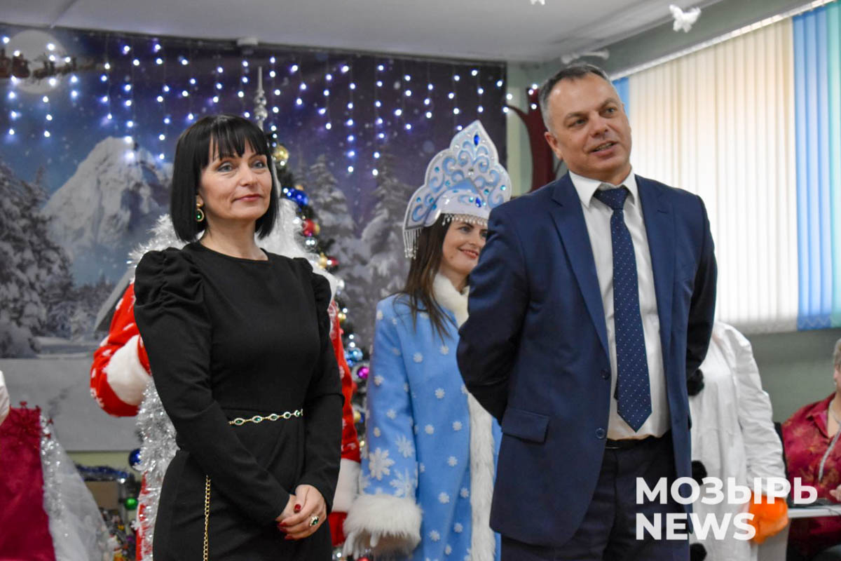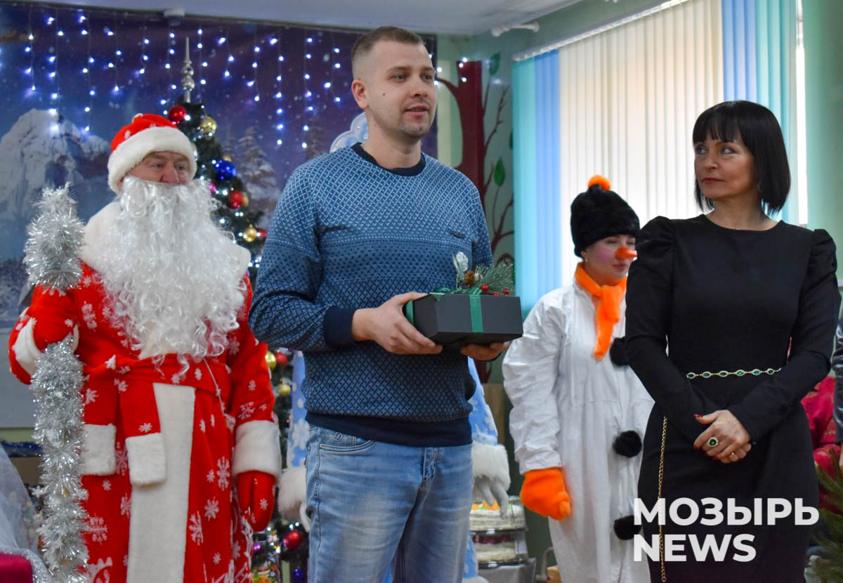 Здесь для воспитанников Центра состоялось новогоднее представление с участием сказочных персонажей, в роль которых талантливо перевоплотились сотрудники учреждения и родители воспитанников. Безусловно, главными героями представления были Дед Мороз со Снегурочкой, но предновогоднюю сказку отлично дополнили Снеговик, Маша и Медведь, Баба Яга и Кикимора. Было очевидно, что ребята радовались присутствию Снеговика, потому как ждут настоящего снега, чтобы покататься на санках и поиграть в снежки, внимательно следили за проделками Бабы Яги и Кикиморы и очень переживали, чтобы не опоздал на праздник Дед Мороз с подарками. Суть в том, что издавна дети и взрослые чуточку верят в волшебство, которое случается под Новый год, а подарки, полученные из рук Деда Мороза, несут целительный импульс надежды и добра, здоровья и исполнения желаний.Традиционно участниками этого предпраздничного мероприятия стали почетные гости, которые пришли к воспитанникам Центра с добрыми пожеланиями. Эту страницу, которая завтра уже станет историей, открыла директор учреждения Светлана Кудравец. Она напомнила всем присутствующим, что Центр был открыт в сентябре 1995 года, и сегодня, спустя 30 лет, он также выполняет свою миссию, наполняя сердца тех, кто нуждается в услугах специалистов этого учреждения и реабилитации, теплом и озаряет радужным светом.К ее словам с подарками и добрыми пожеланиями присоединились и многочисленные гости. В их числе представители филиала «Мозырская ТЭЦ» РУП «Гомельэнерго», УМ № 58 ОАО «Полесьестрой», ОАО «Мозырский НПЗ» и ОАО «Мозырский домостроительный комбинат», государственных предприятий «Совхоз-комбинат «Заря» и «Мозырский опытный лесхоз», Мозырской районной организации «Белорусский союз женщин» и Мозырского областного лицея, Почетный гражданин города Мозыря, депутат и меценат Воскан Чобанян, управляющий фермерским хозяйством Асадовых Михаил Засименко и директор ООО «МиФудГрупп» Кирилл Копылович.После многочисленных слов поздравлений мероприятие продолжилось в хороводе с Дедом Морозом и Снегурочкой, а каждый подопечный Центра получил новогодний подарок.